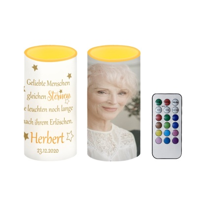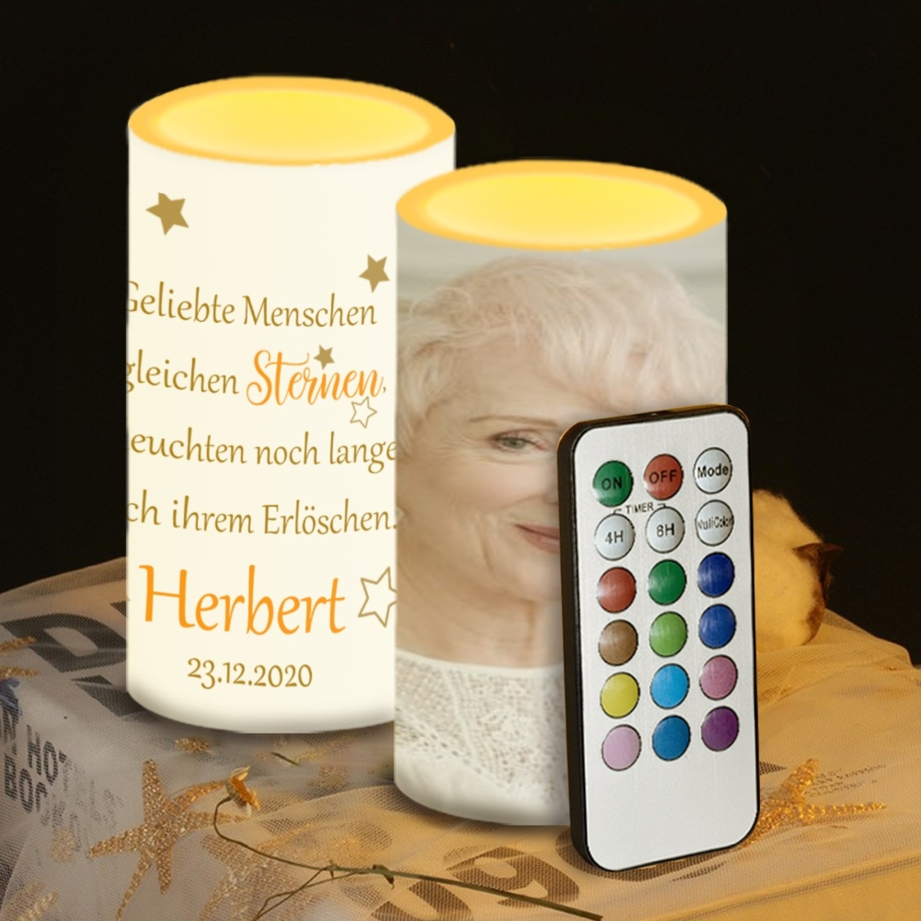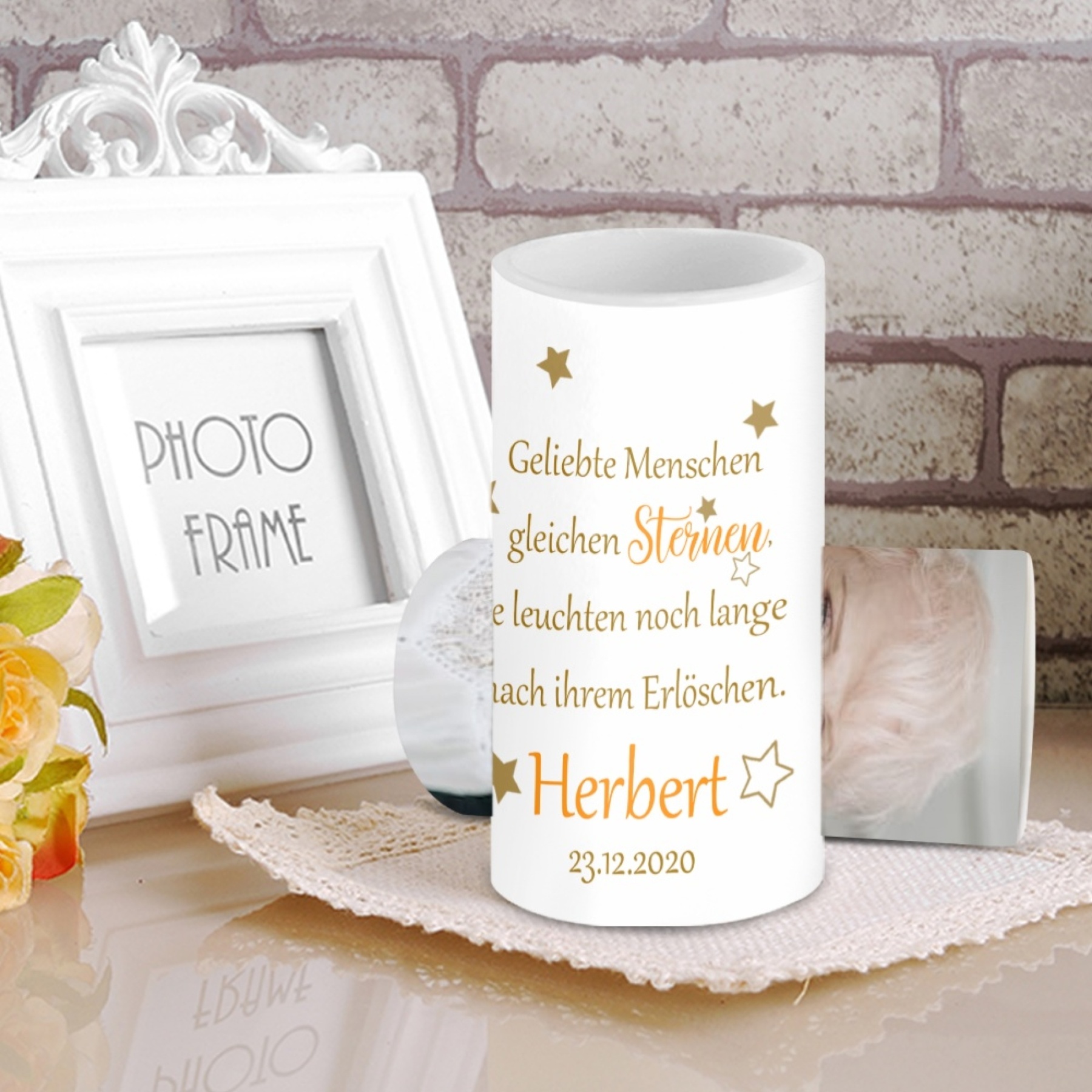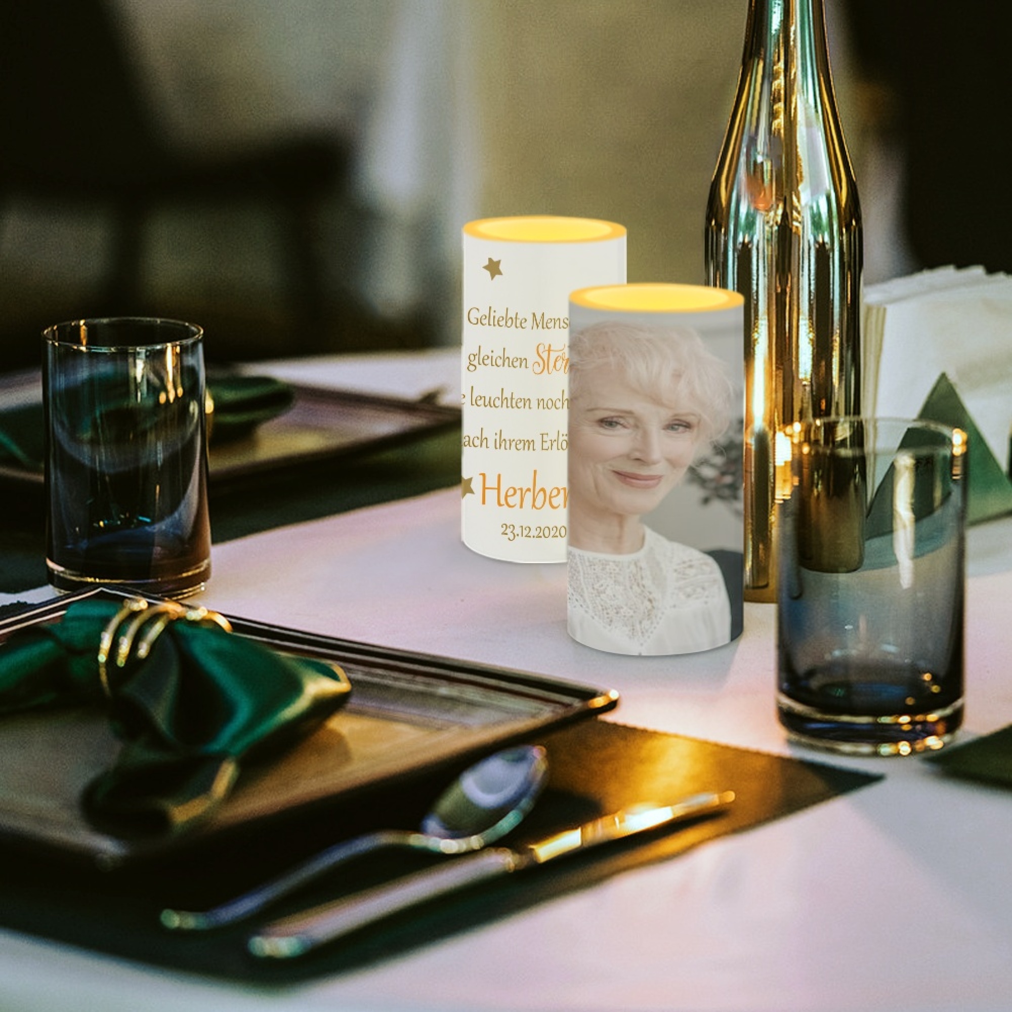 Personalisierte Foto Name Datum Trauer 2er-Pack flammenlose Kerzenhalter-Geliebte Menschen gleichen Sternen-Elektronische Gedenkkerzenhalter