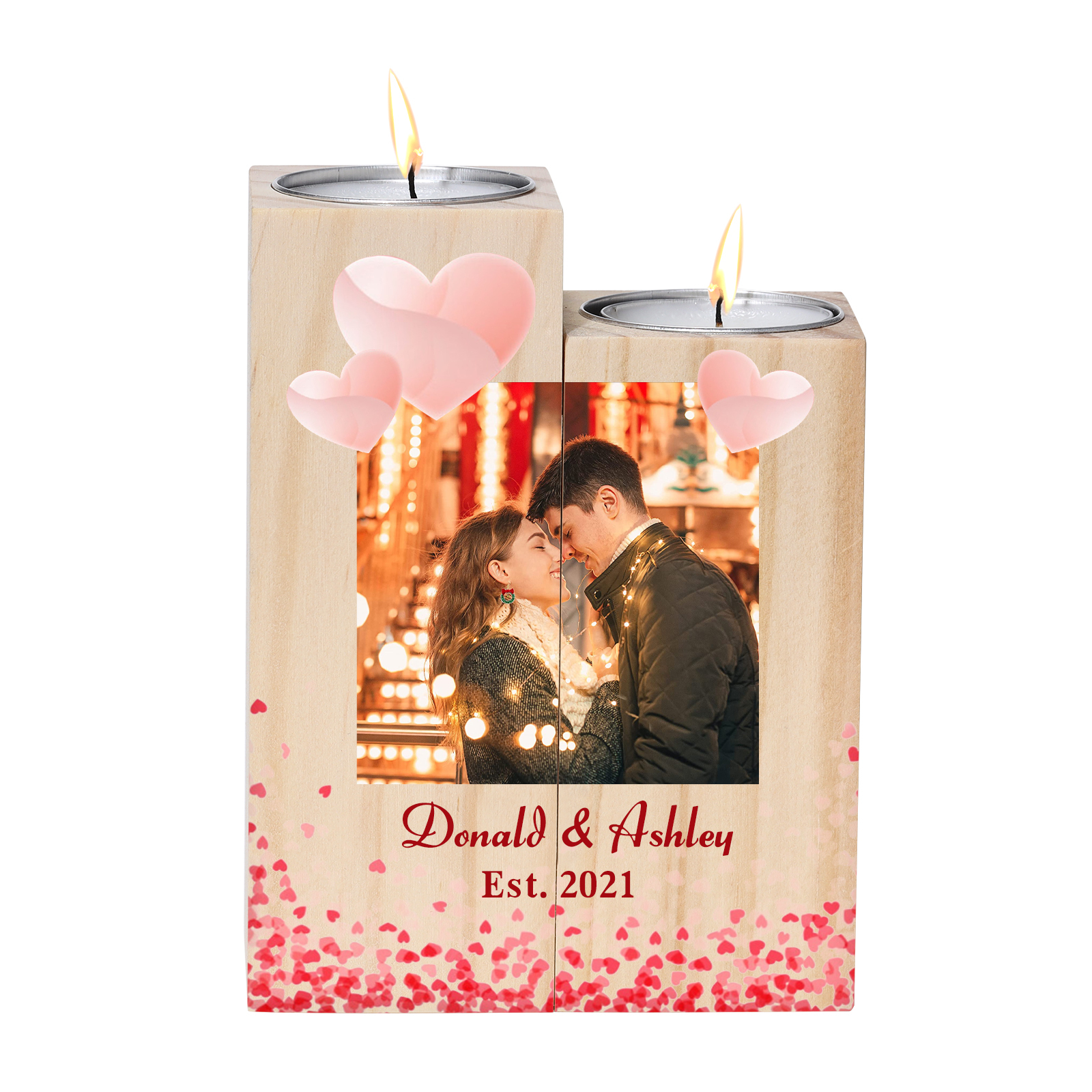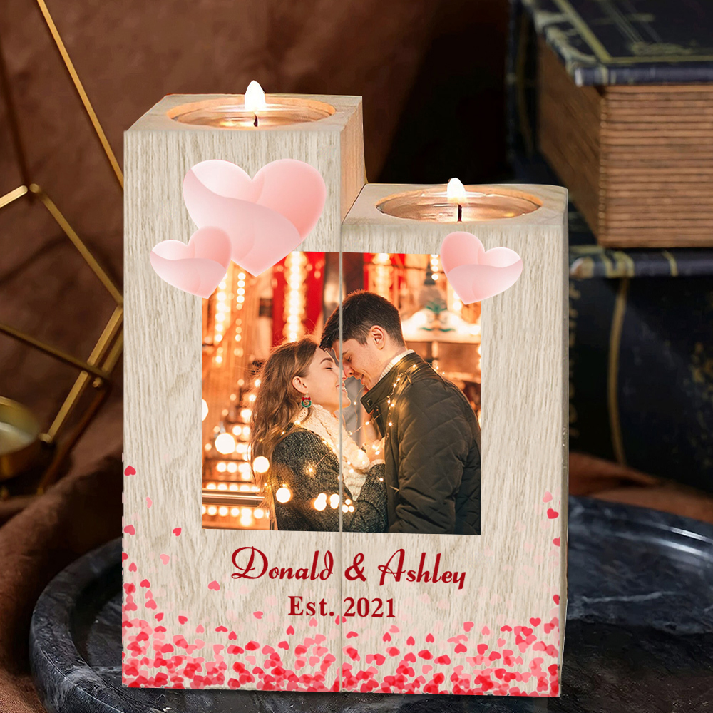 Personalisierte Foto & Text & Datum Herz Kerzenhalter- für Paare