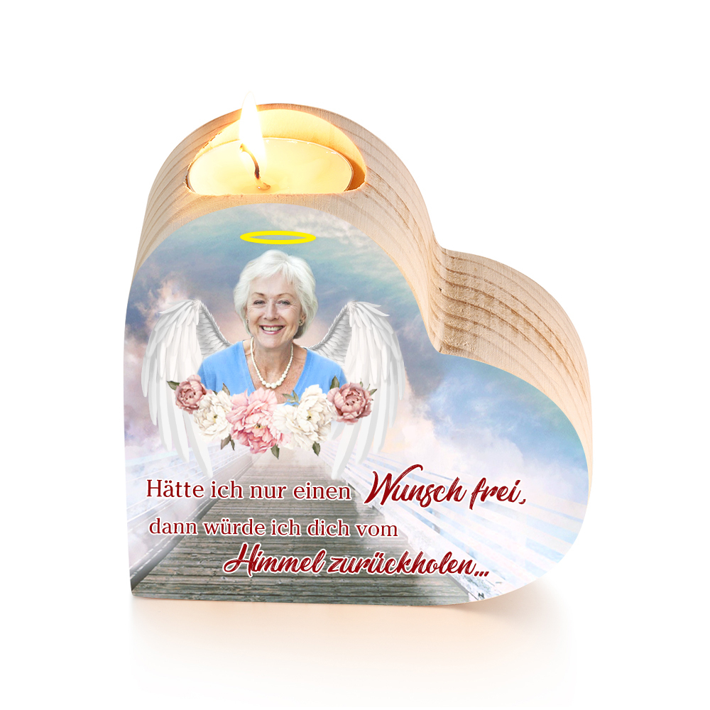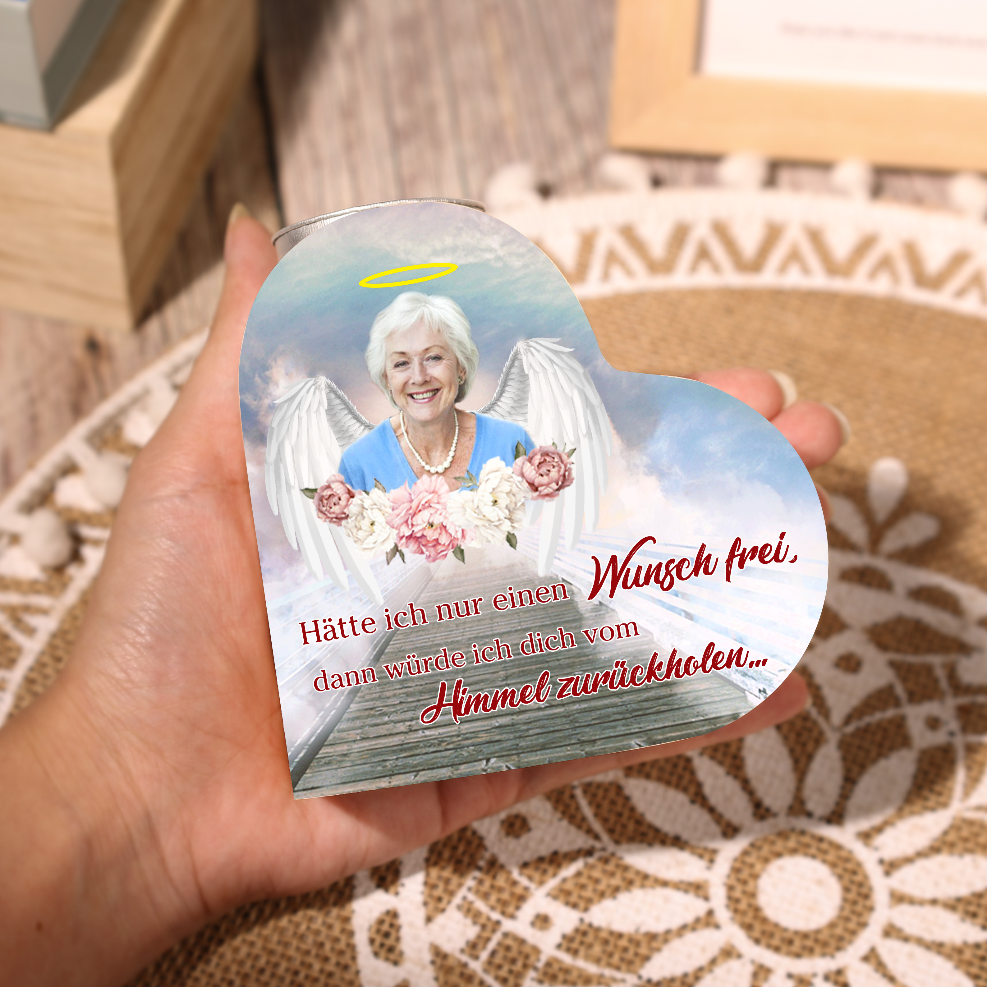 Personalisierte Foto Trauer Kerzenhalter-Hätte ich nur einen Wunsch frei dann würde ich dich vom Himmel zurückholen- Herzform Kerzenhalter