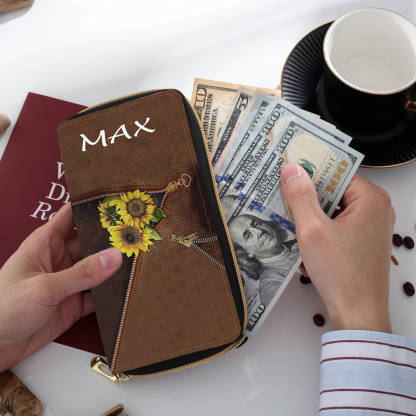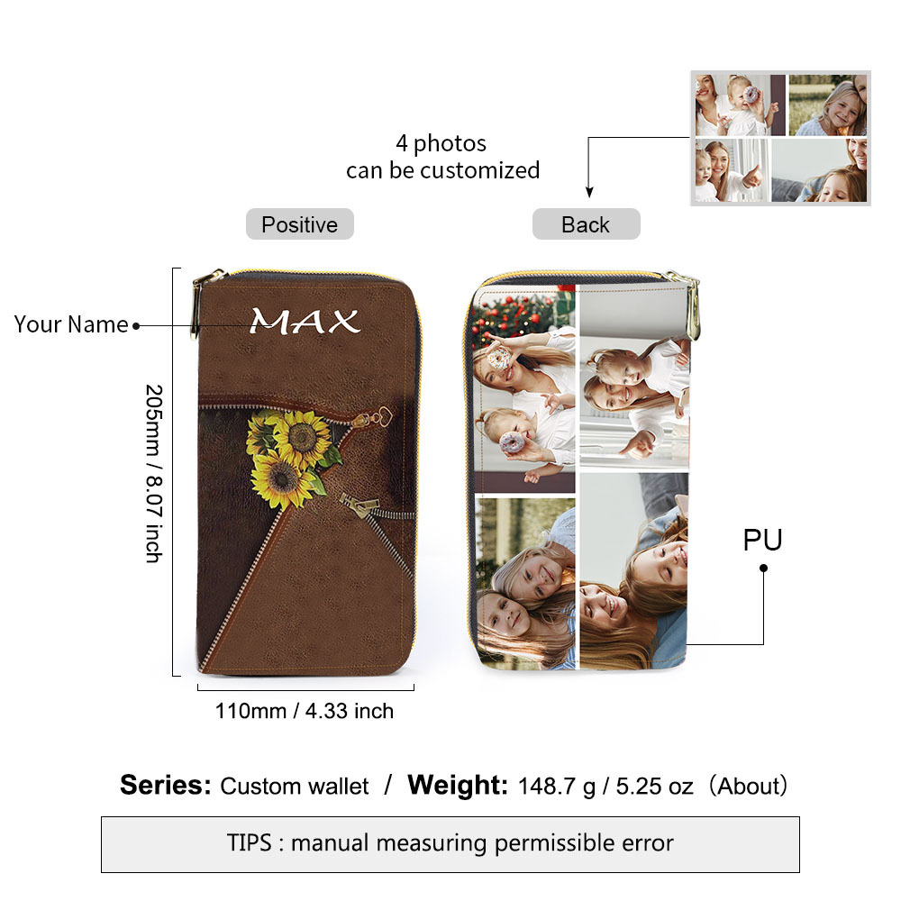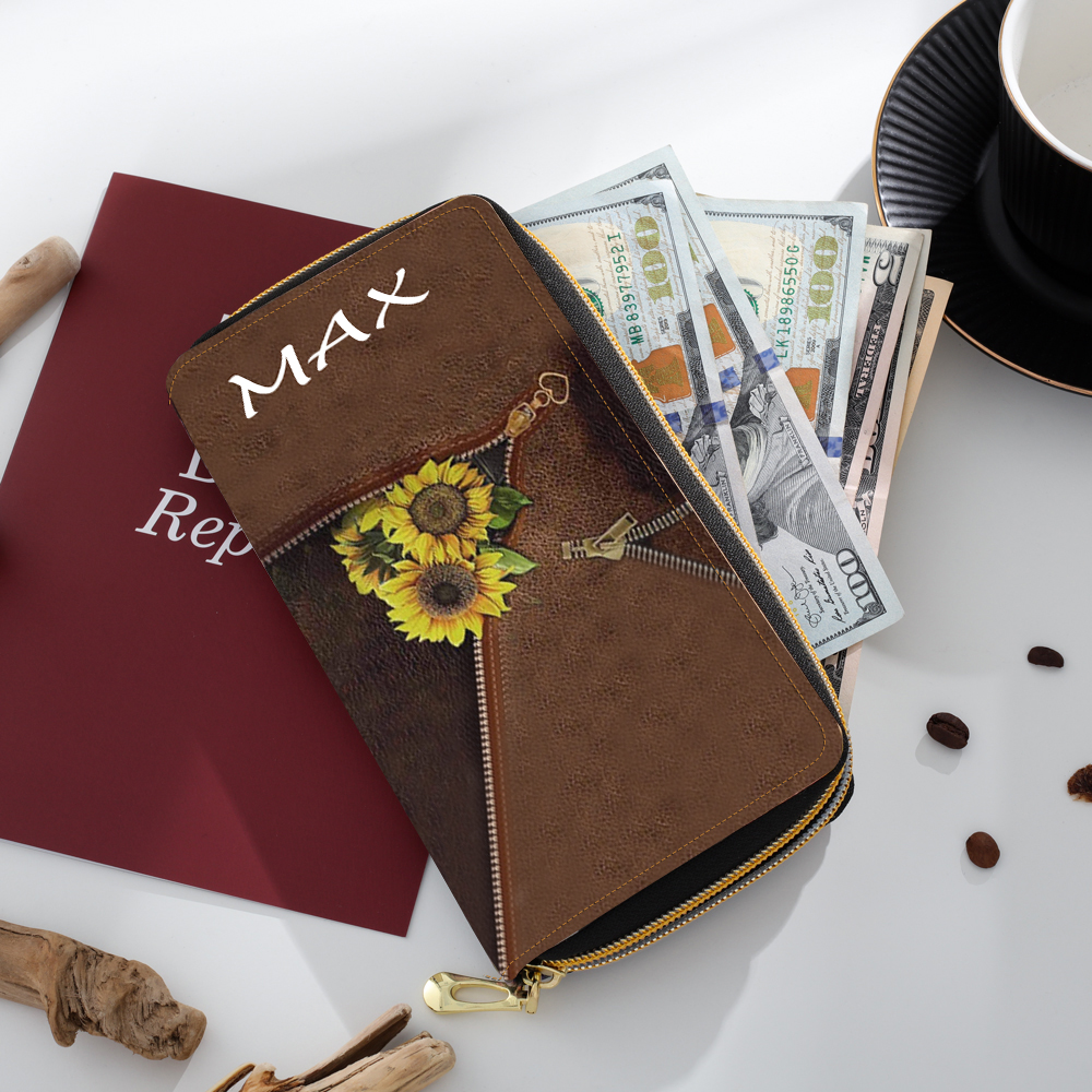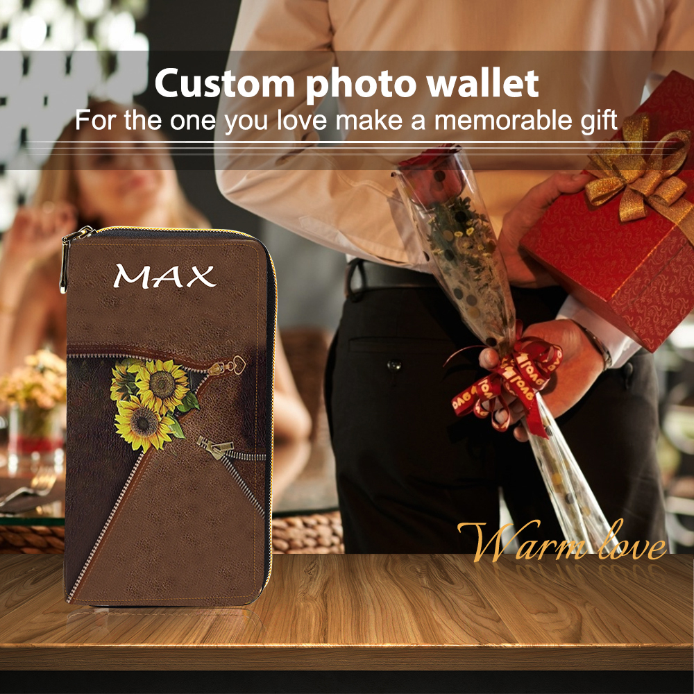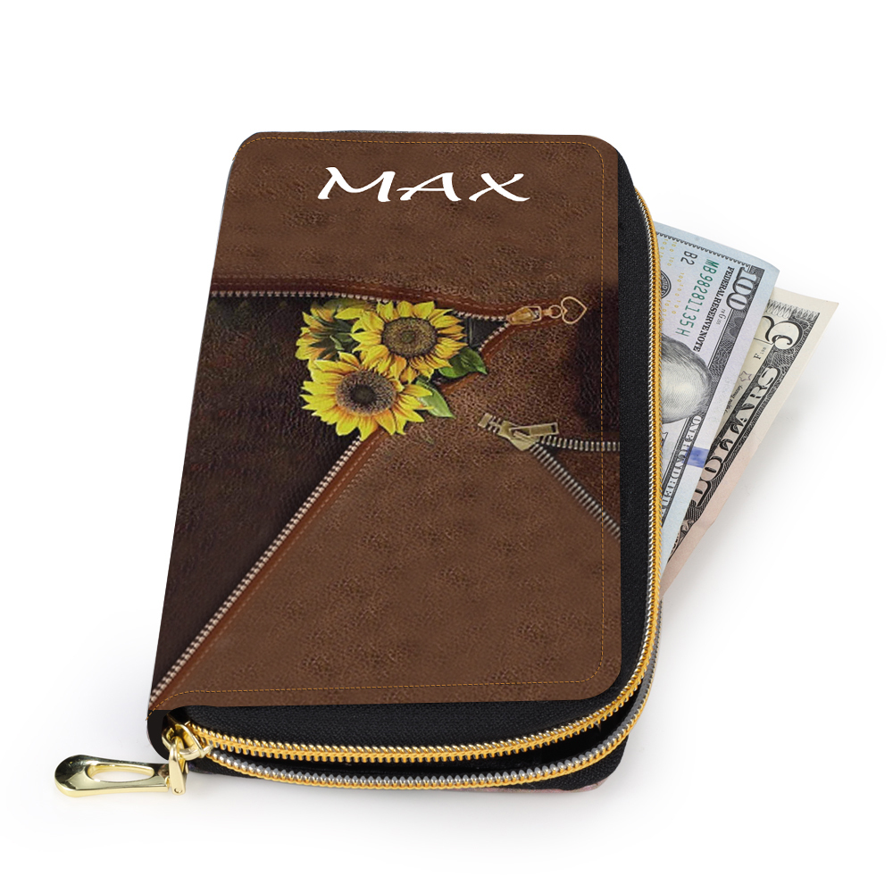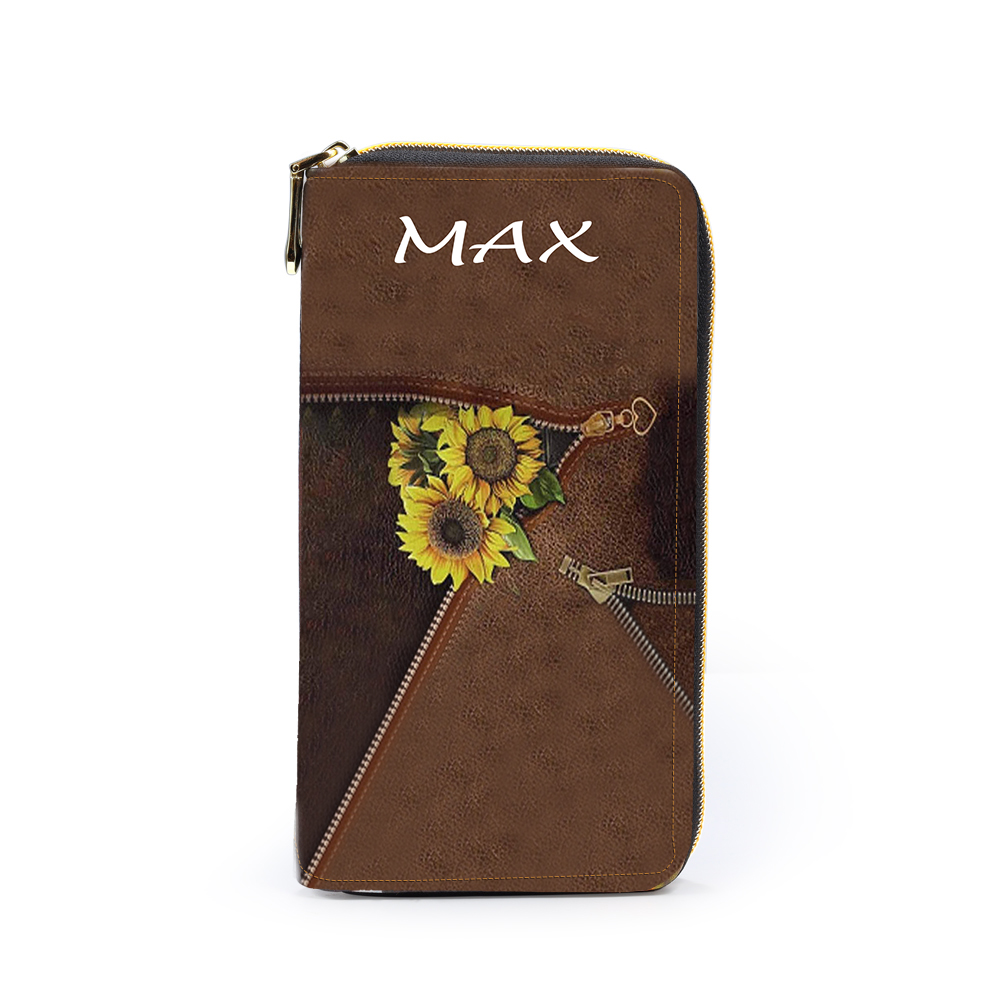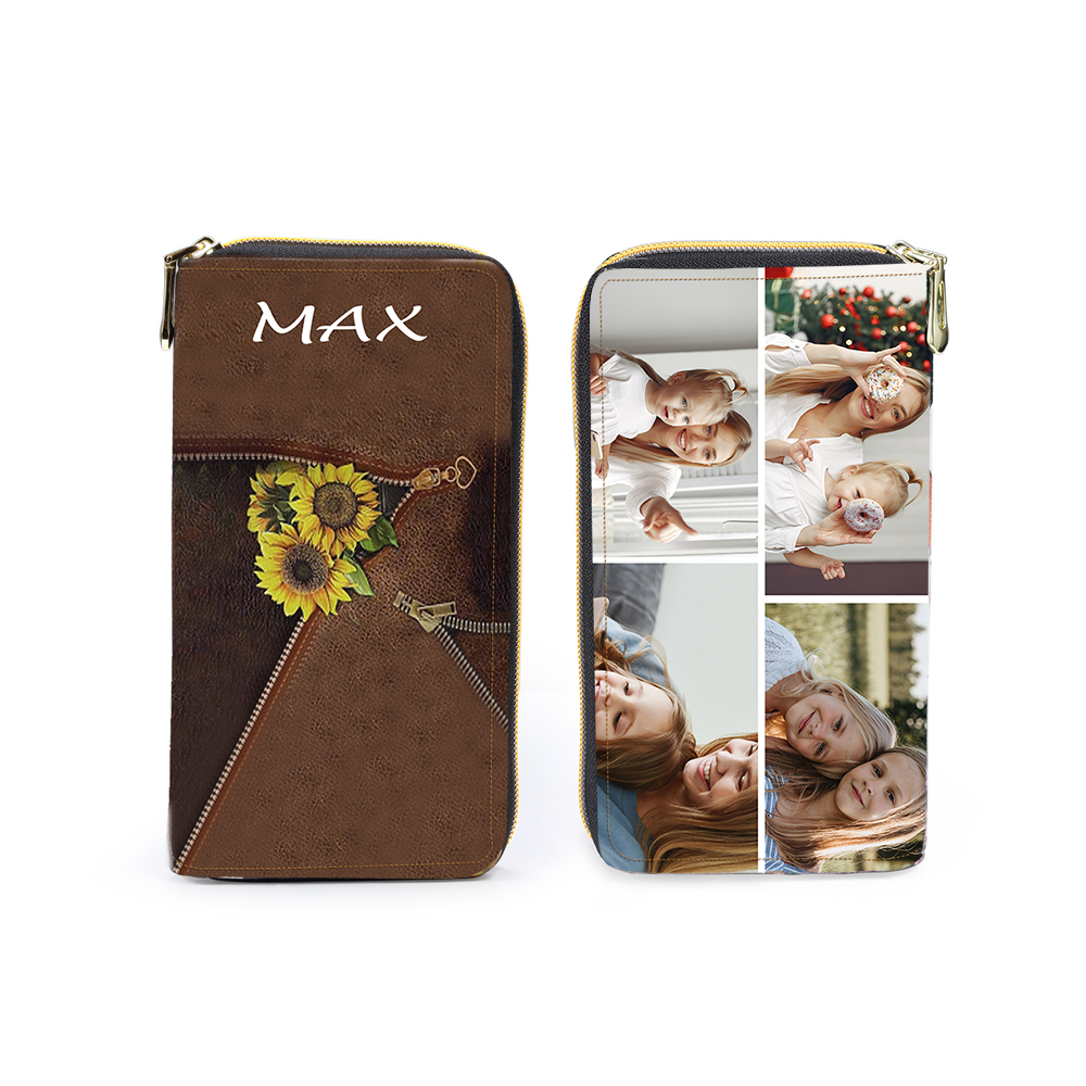 Personalisierte Fotos & Name Sonnenblumen Damen Brieftasche Lange Geldbörse