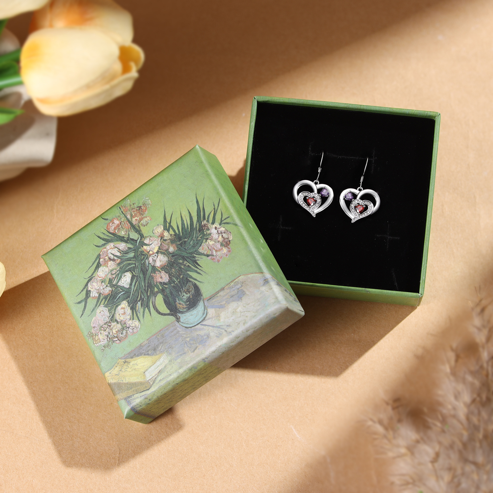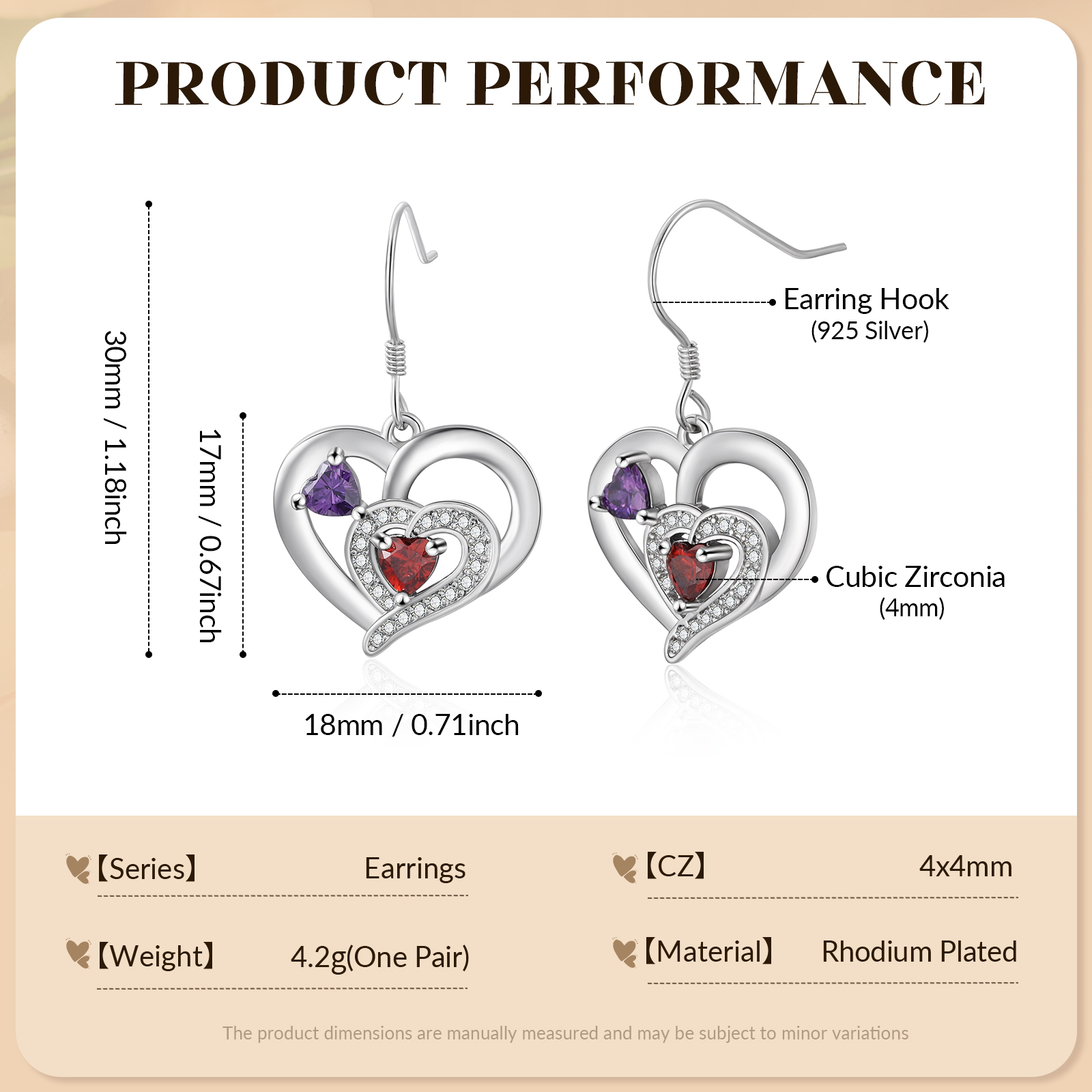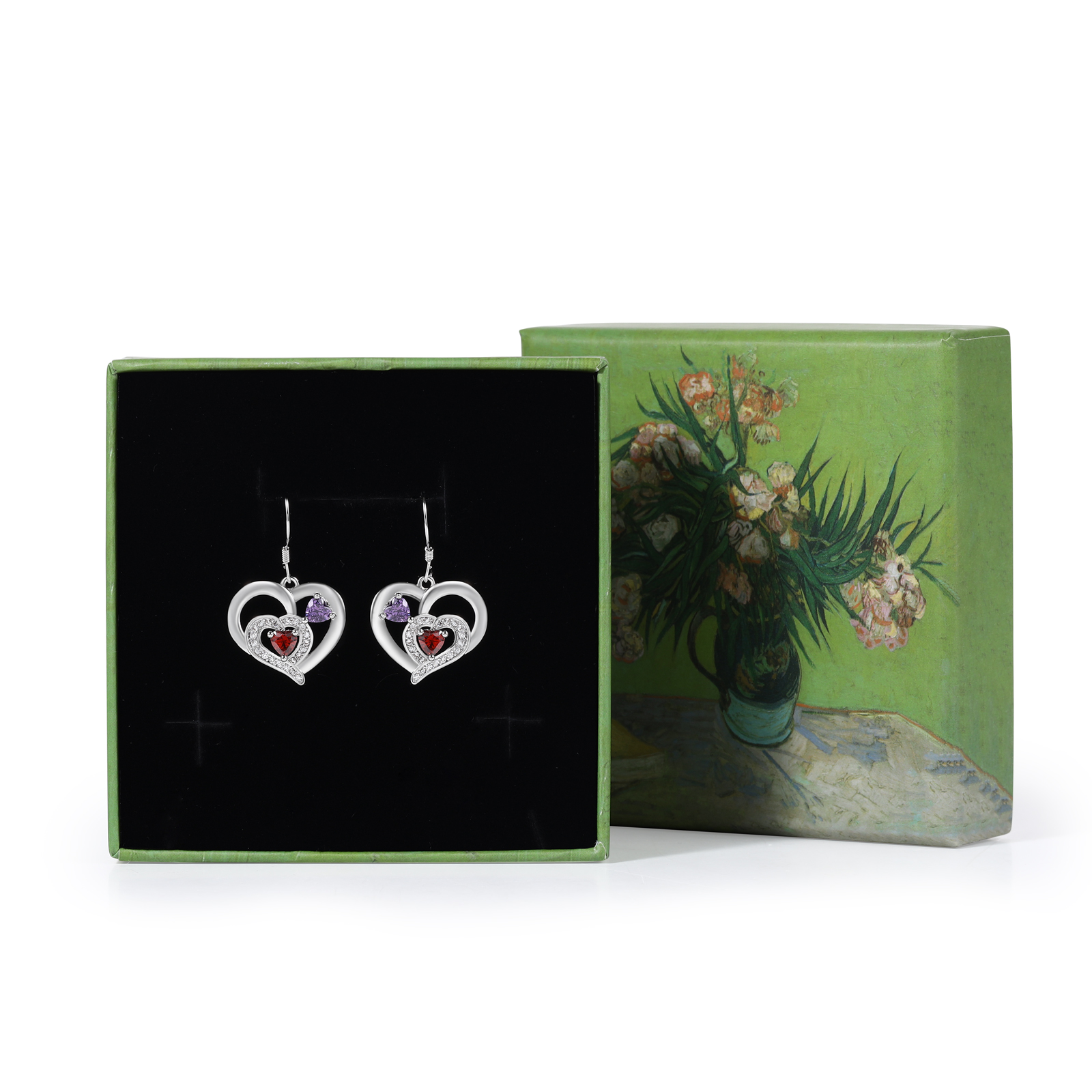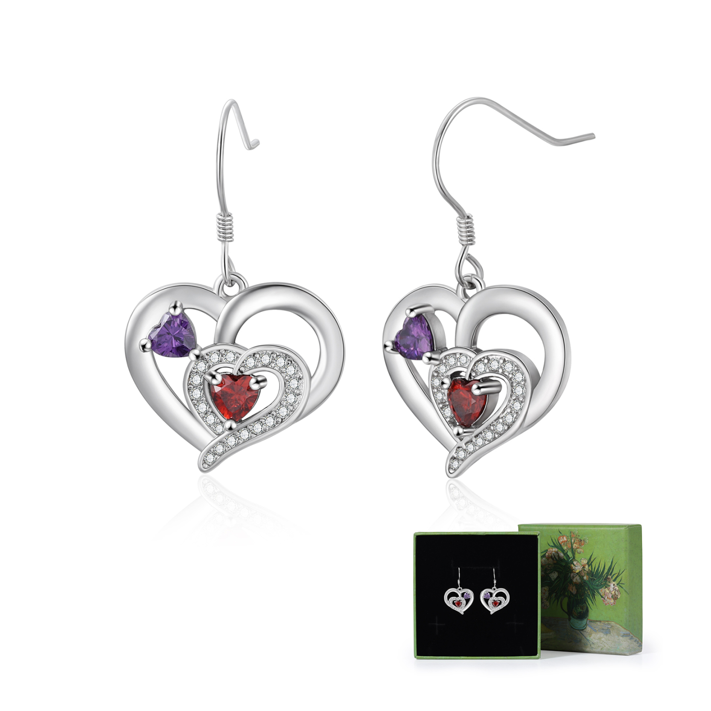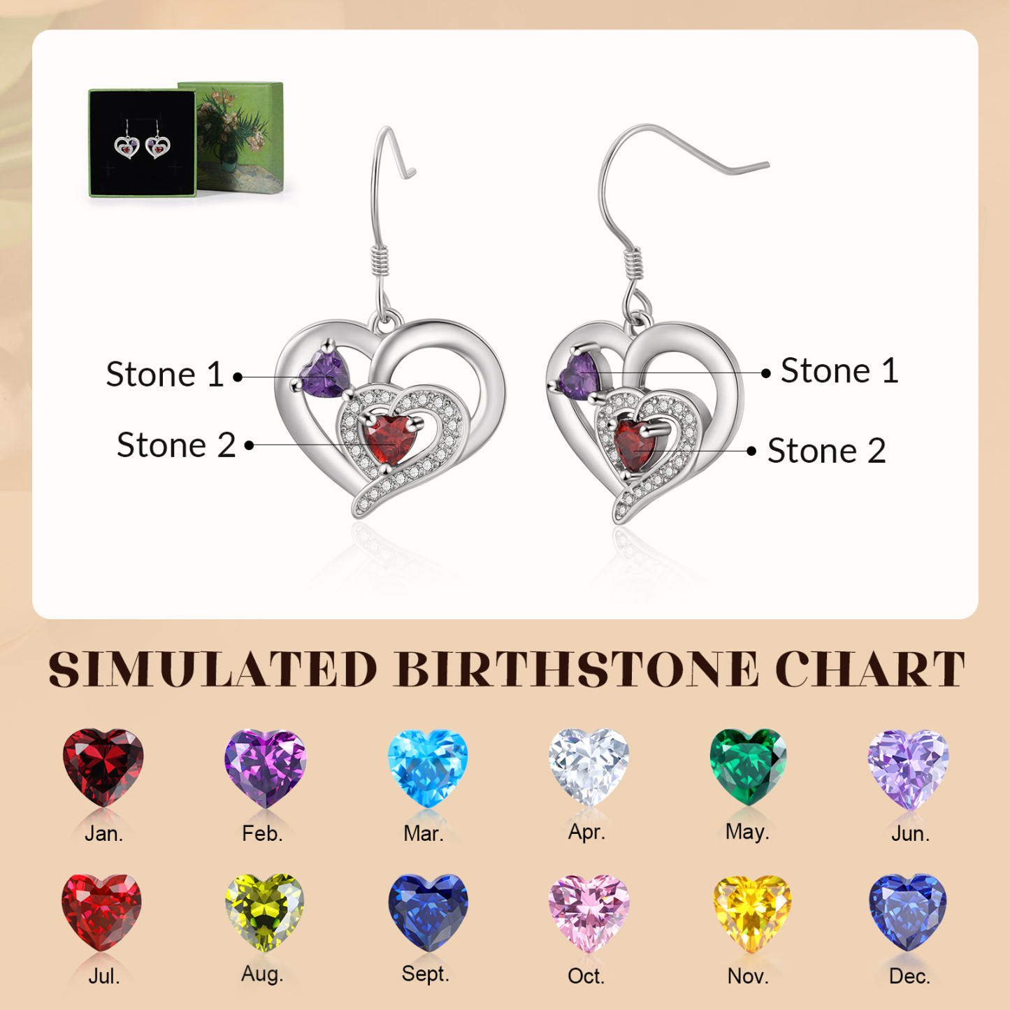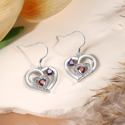 Personalisierte Geburtsstein Ohrringe mit Doppelherz und 2 Geburtssteinen aus 925er Sterlingsilber