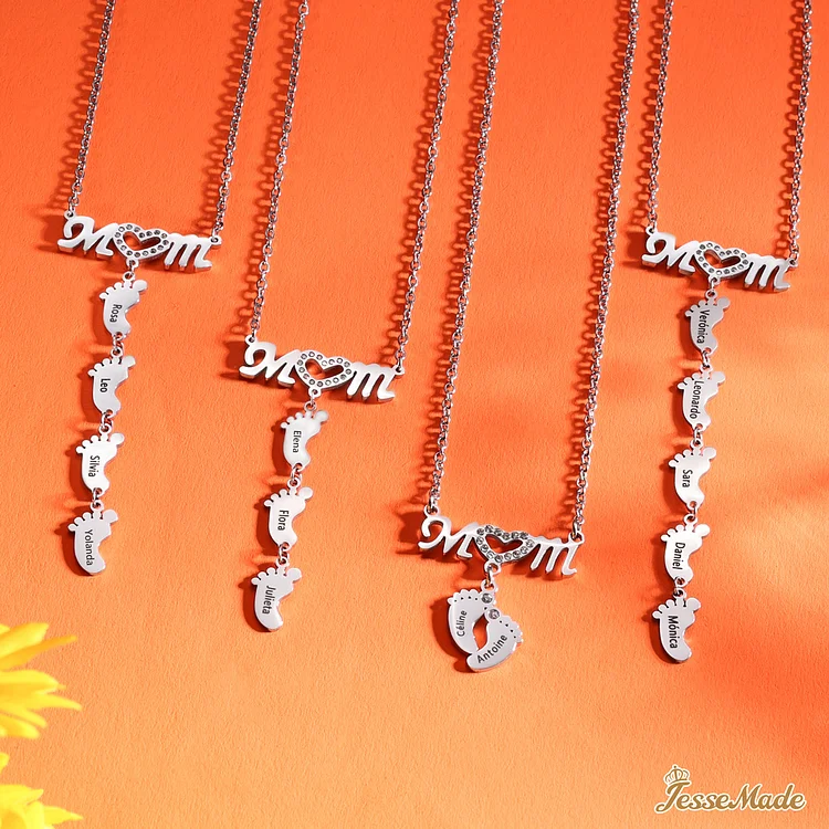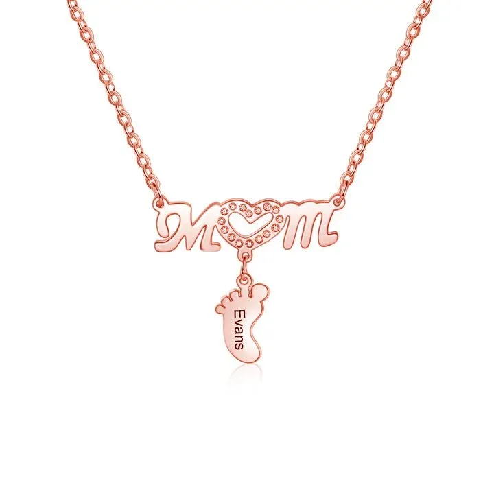 Personalisierte 1 Name MOM Halskette mit 1 Baby Fußanhänger