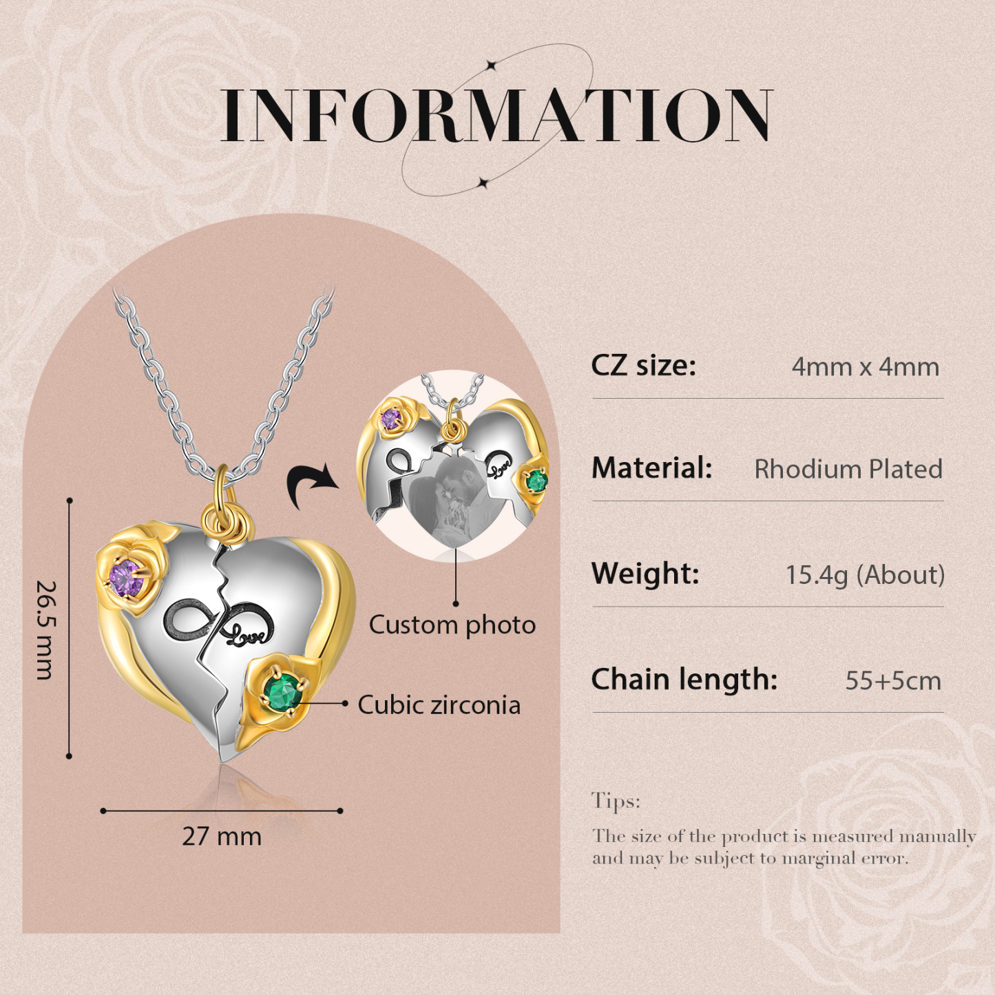 Personalisierte Herz Halskette mit Foto und 2 Geburtsteinen Graviert, Öffnbar Anhänger, Geschenk für die Liebe für Sie