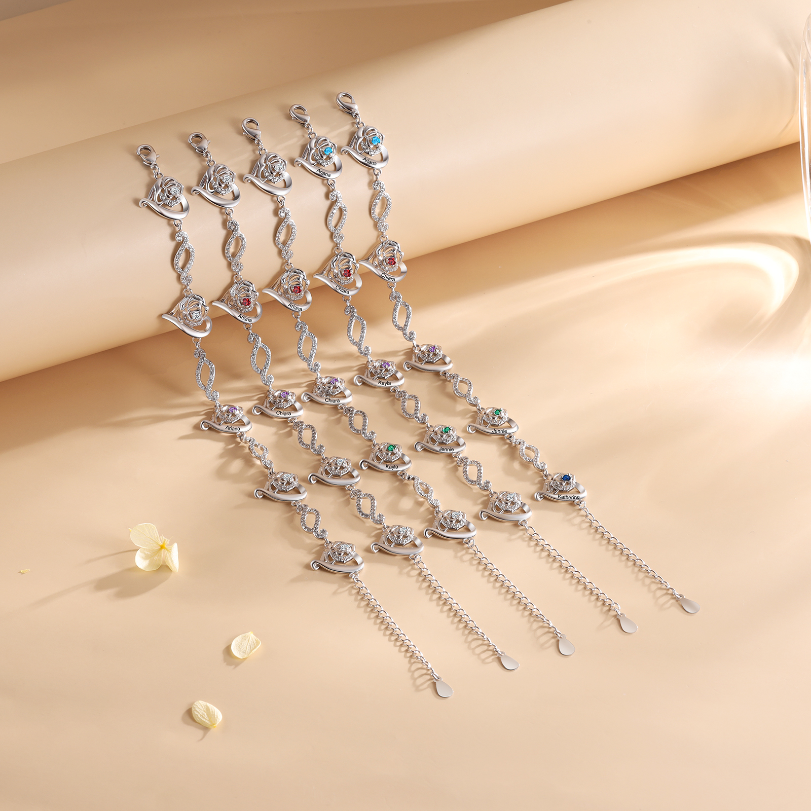 Personalisierte Herz Rose Armband mit 4 Namen und 4 Geburtssteinen Graviert