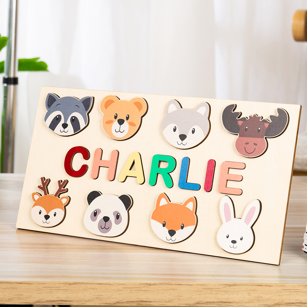 Personalisierte Hölzerne Name Puzzle, Benutzerdefinierte Tiere Holz Puzzle mit Kinder Name