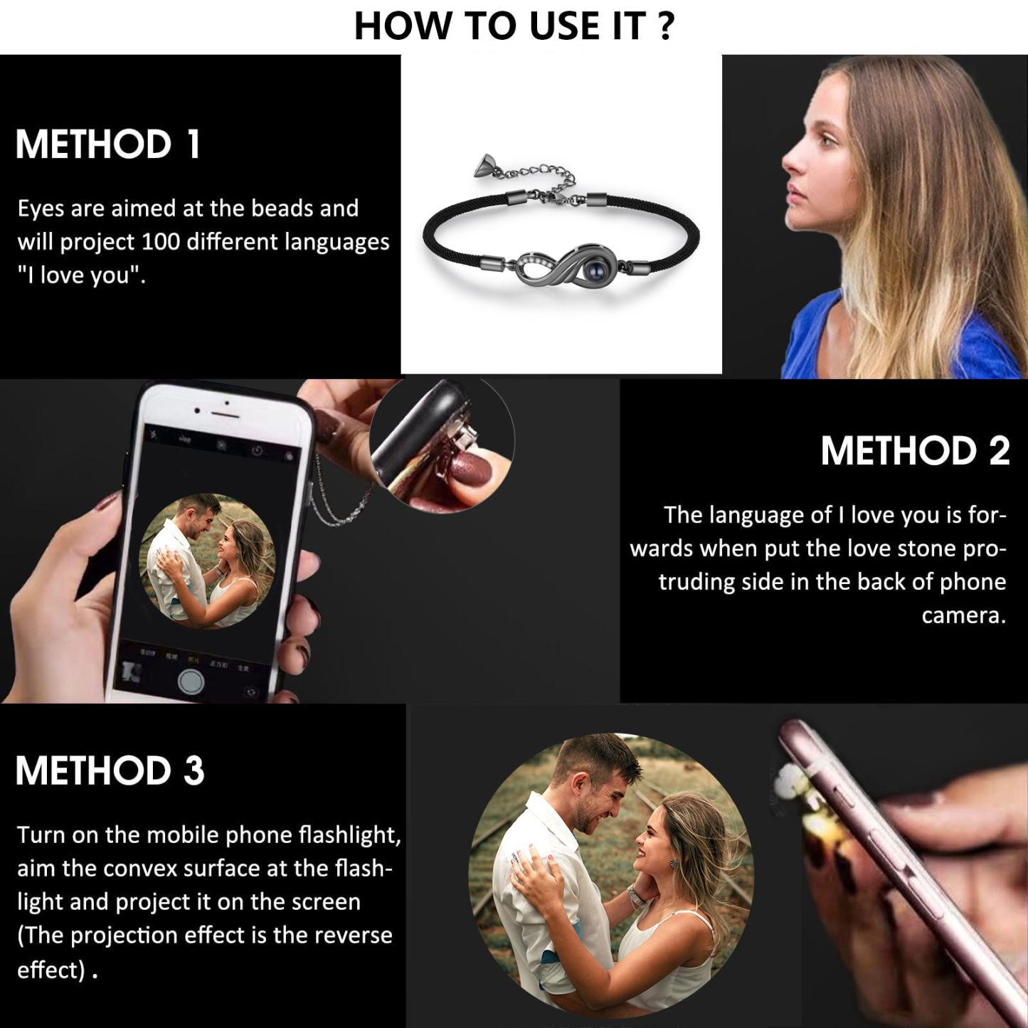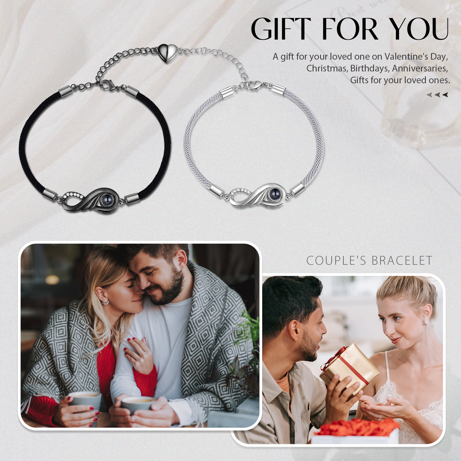 Personalisierte Infinity Anhänger mit Foto Projektion Magnet Pärchen Armbänder