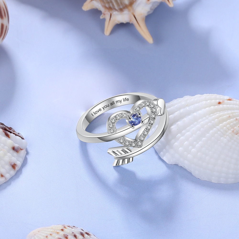 Personalisierte Liebe Herz Ring Amors Pfeil Herz Ring