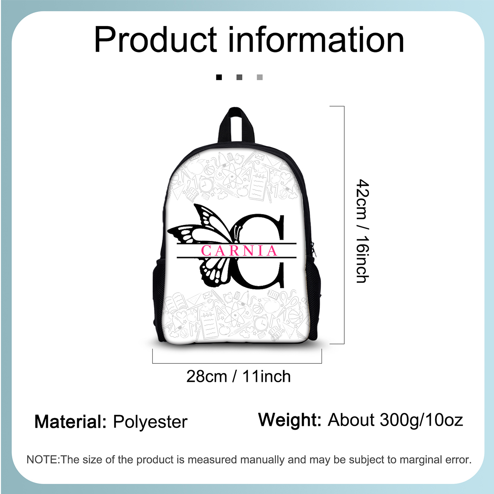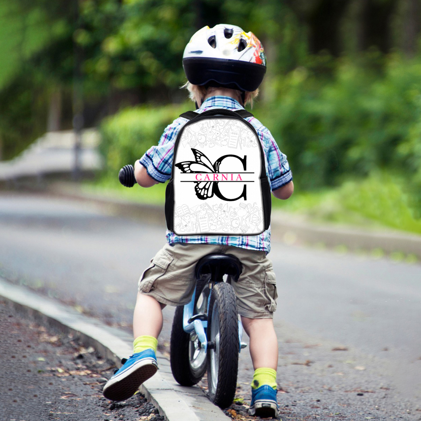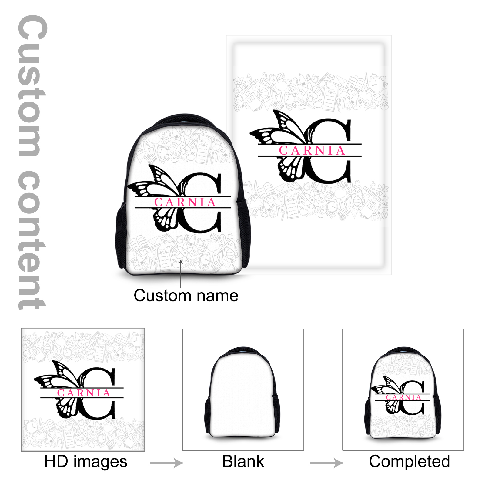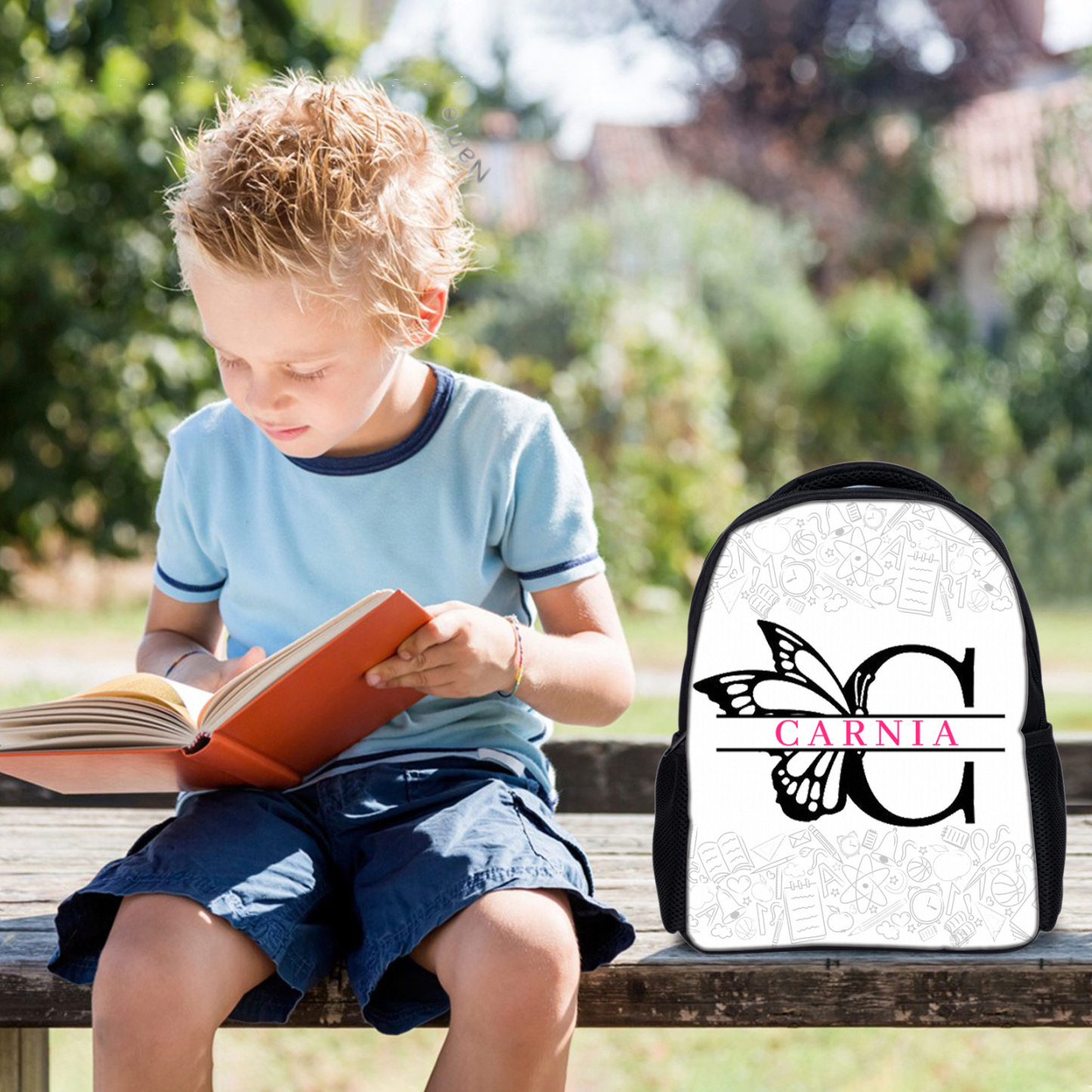 Personalisierte Name & Buchstabe Rucksack Schüler Schmetterling Schultasche