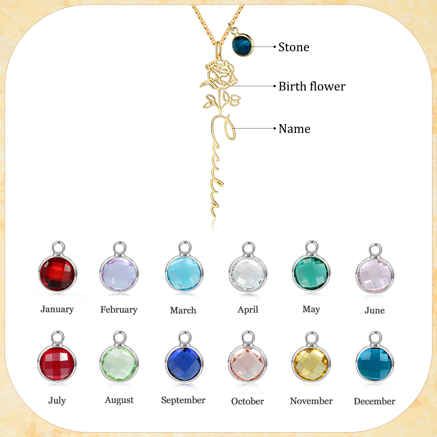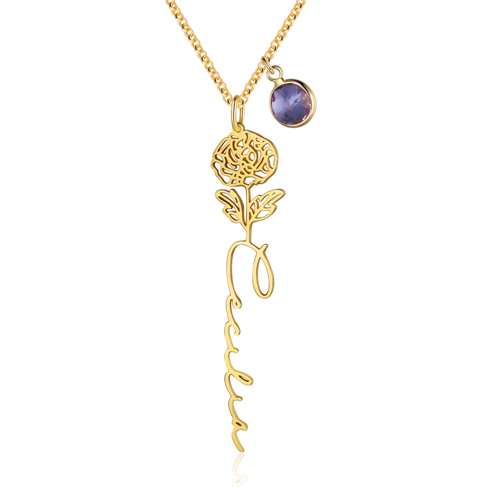 Personalisierte Name Geburtsblume Halskette mit Geburtsstein - Geburtsblume Serie