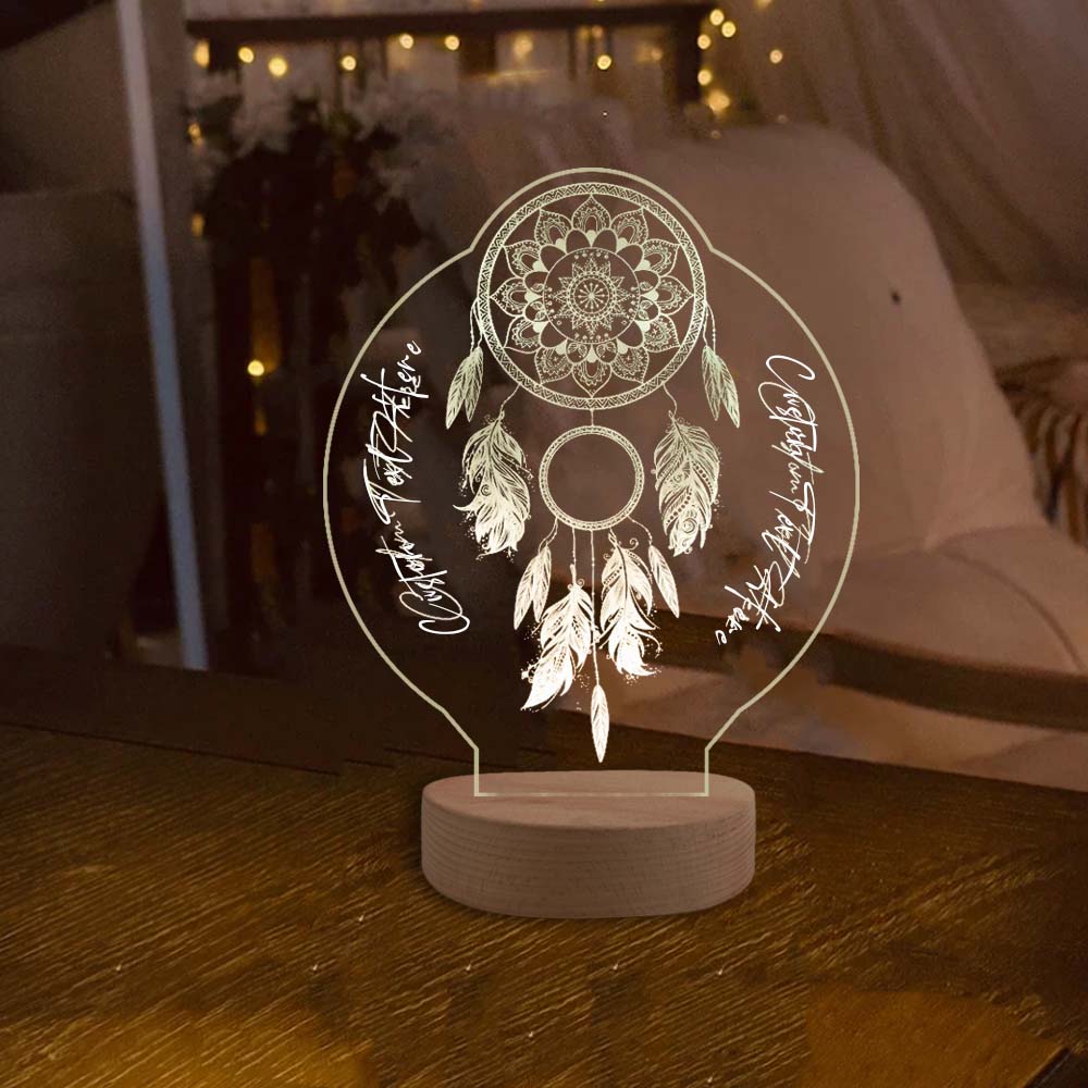 Personalisierte Name oder Text Traumfänger Acryl Nachtlicht, Personalisierte Nachtlicht mit LED-Beleuchtung Warmes Licht