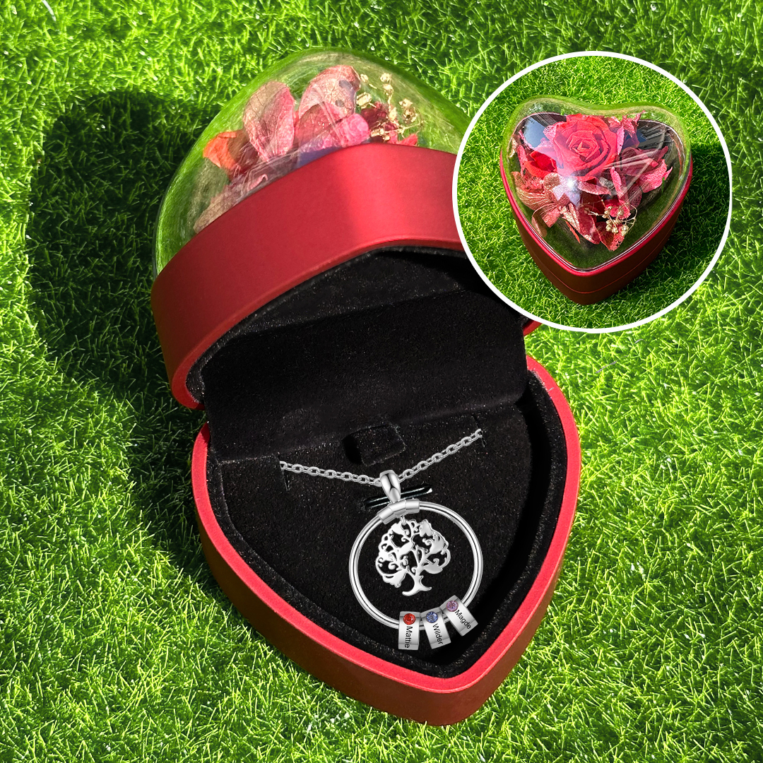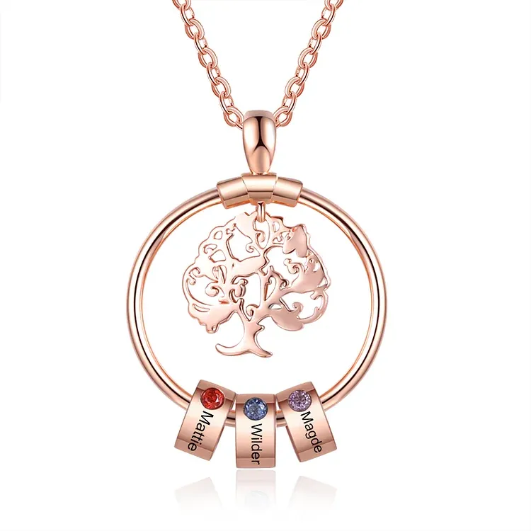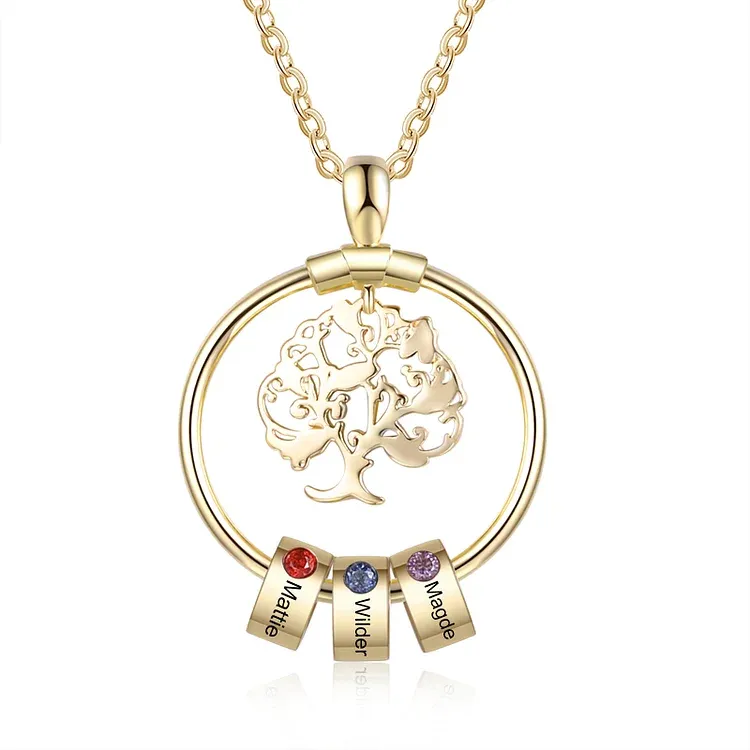 Personalisierte Stammbaum-Namenskette mit 3 Namen und 3 Geburtssteinen