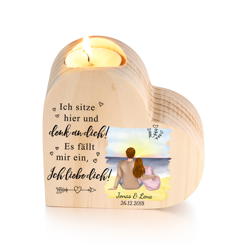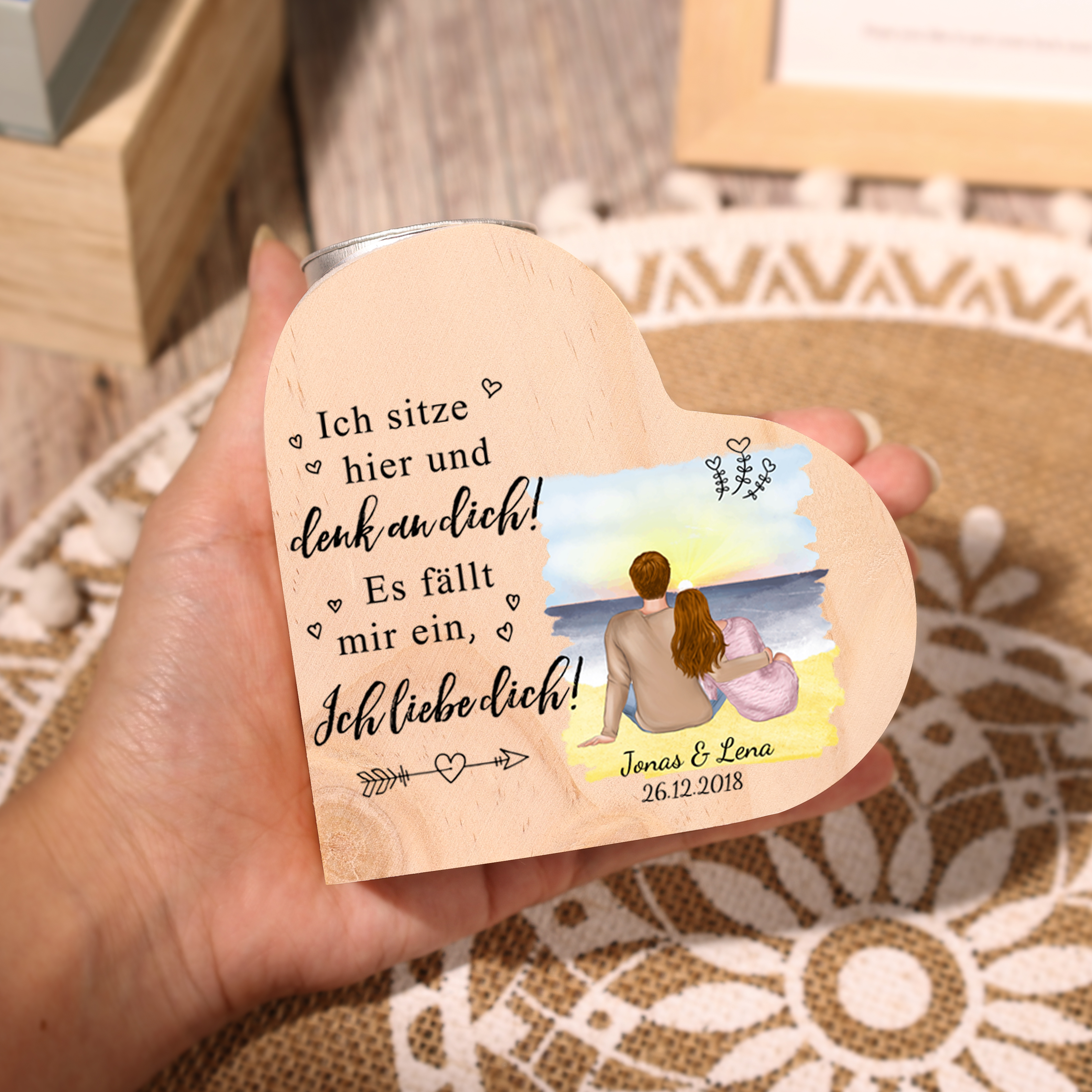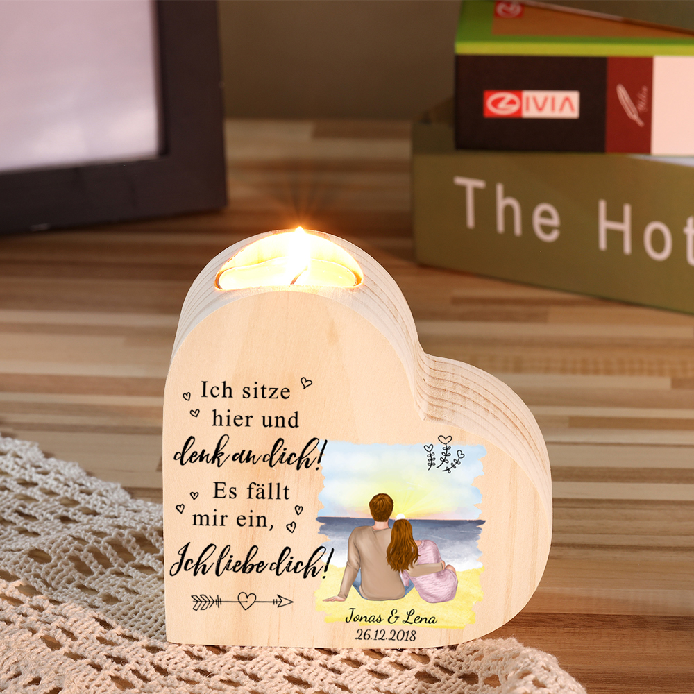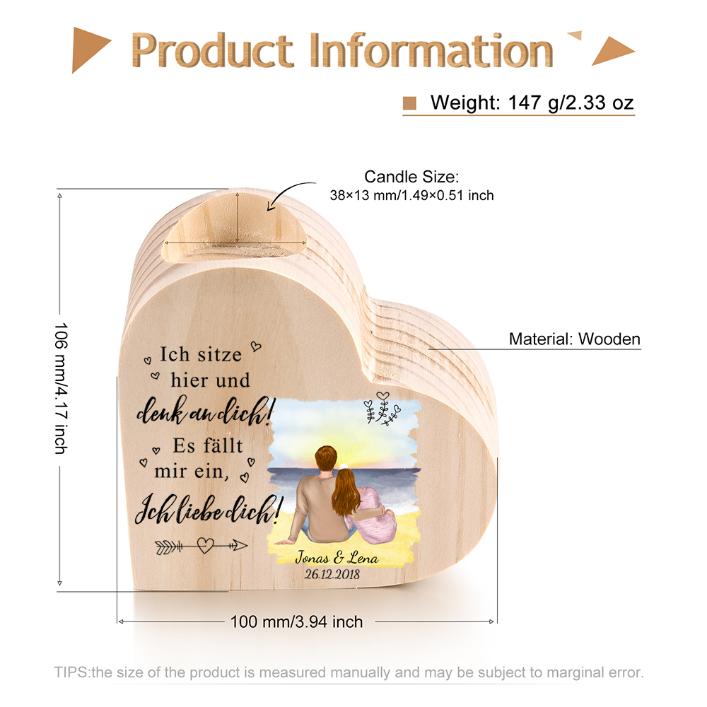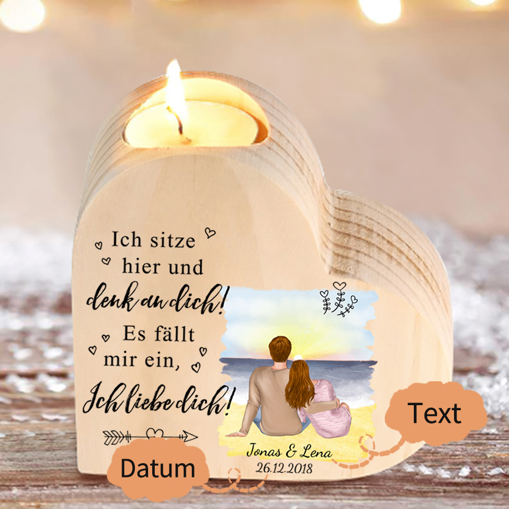 Personalisierte Text & Datum- Es fällt mir ein, Ich liebe dich-Herzform Kerzenhalter für Paare