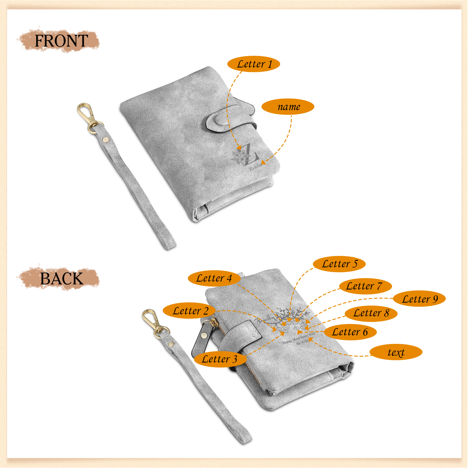 Personalisierter 1 Name & 9 Buchstaben & 1 Text Geldbörse aus PU Leder für Frauen