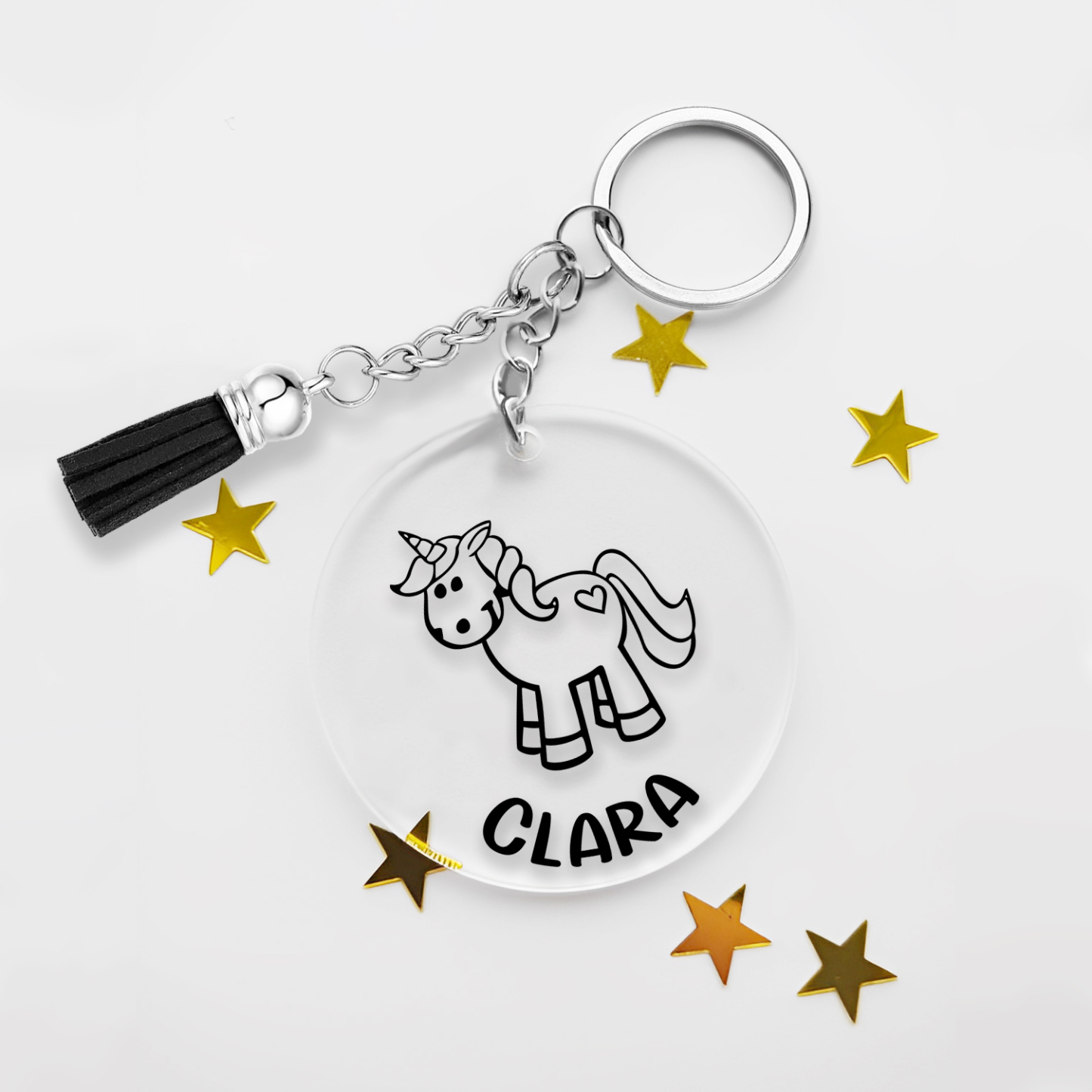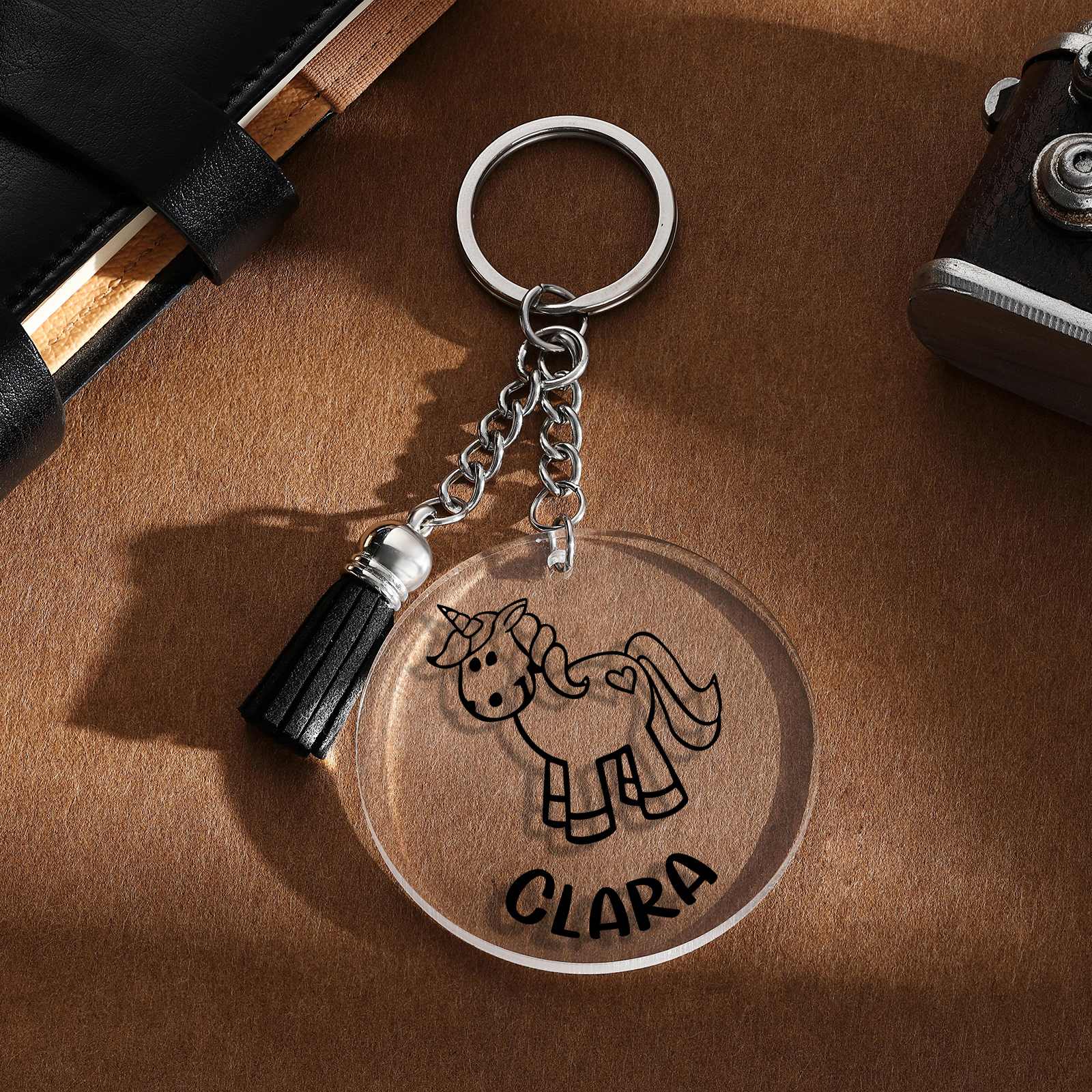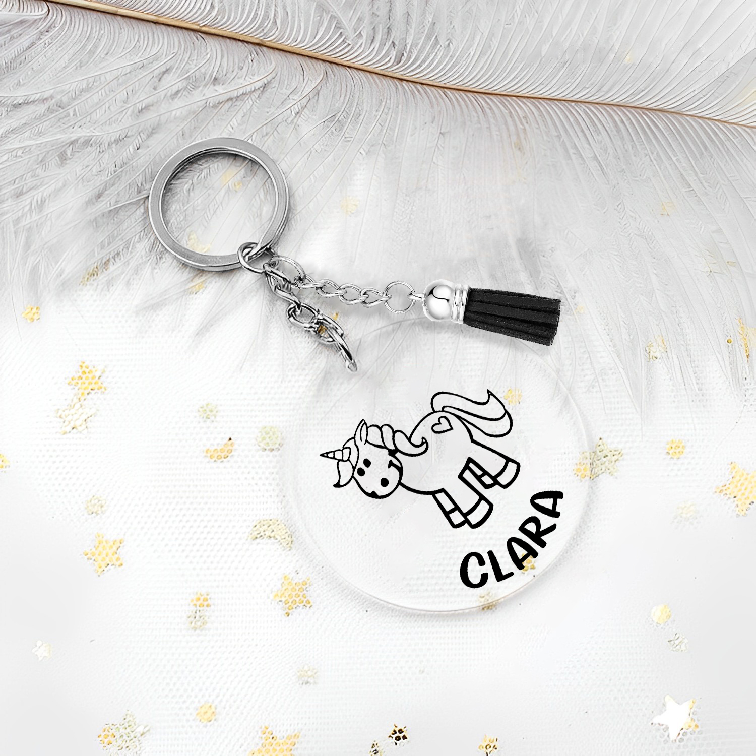 Personalisierter 1 Name Einhorn Acryl Rund Schulanfang Schlüsselanhänger für Schulkind