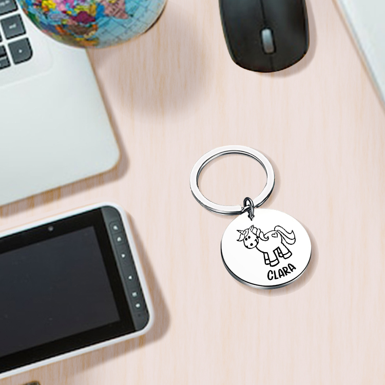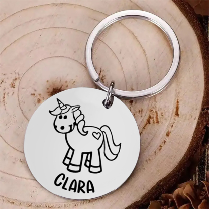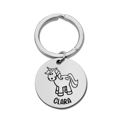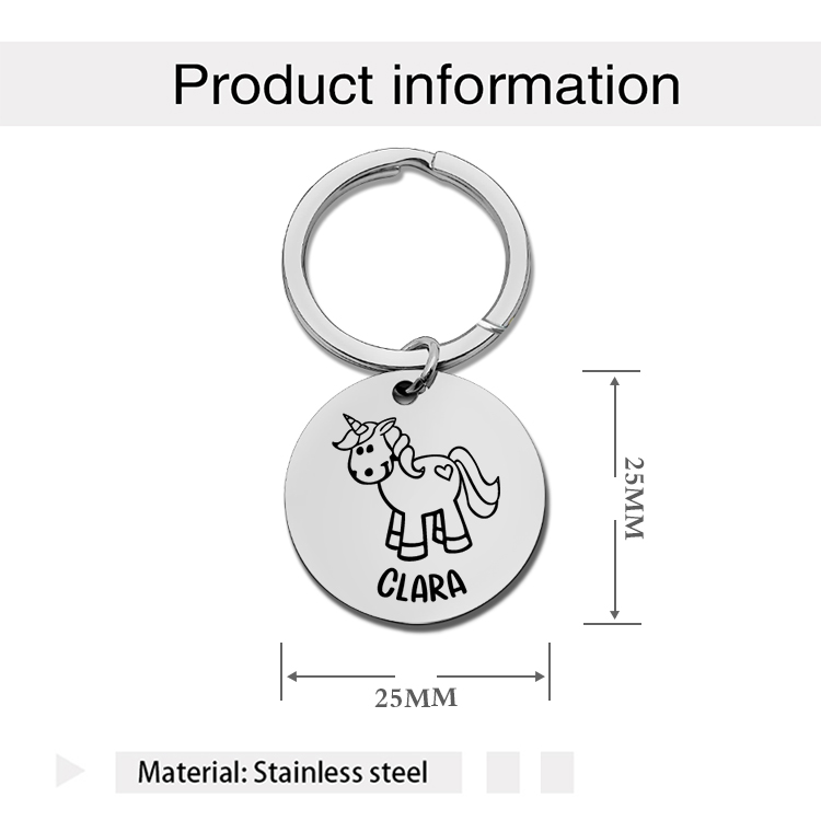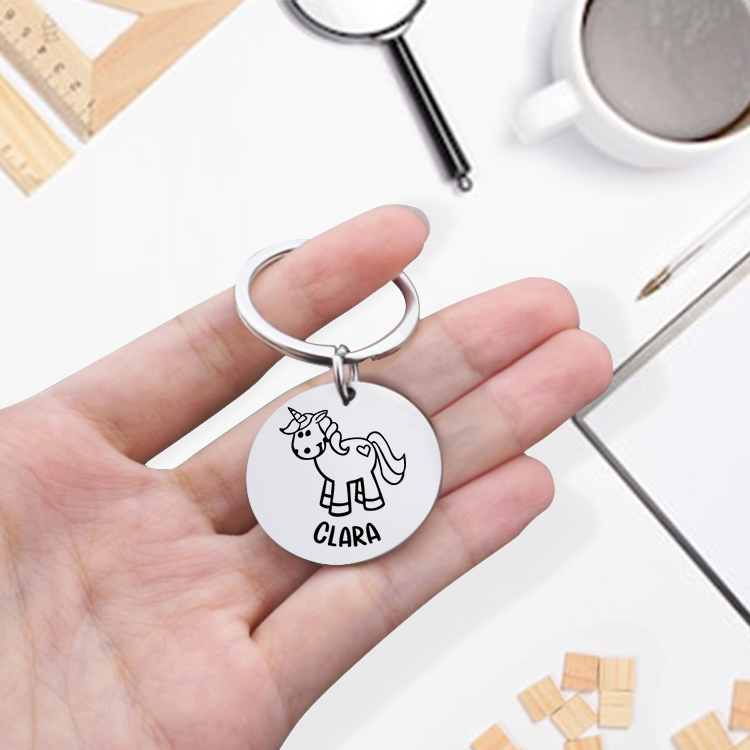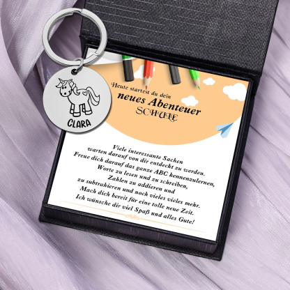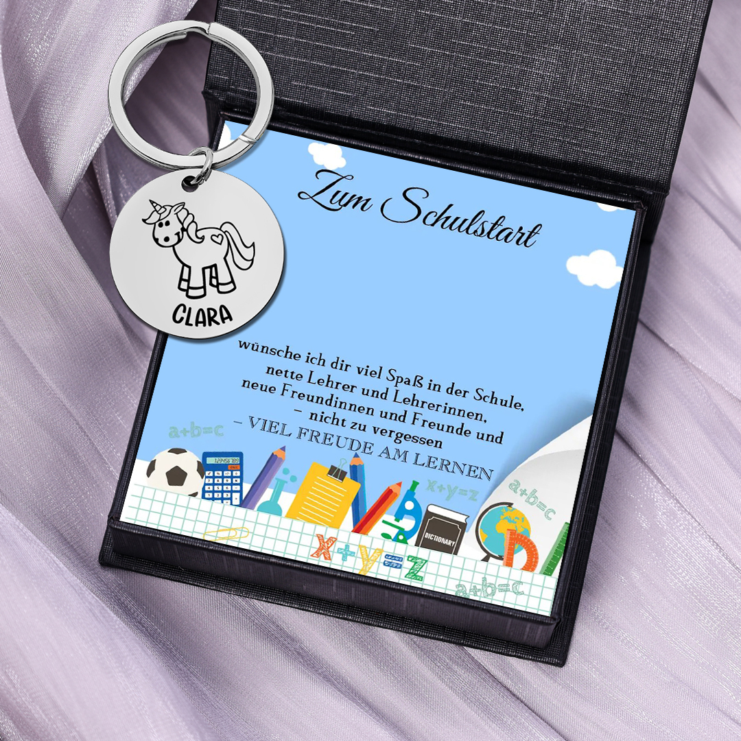 Personalisierter 1 Name Einhorn Schulanfang Edelstahl Schlüsselanhänger für Schulkind