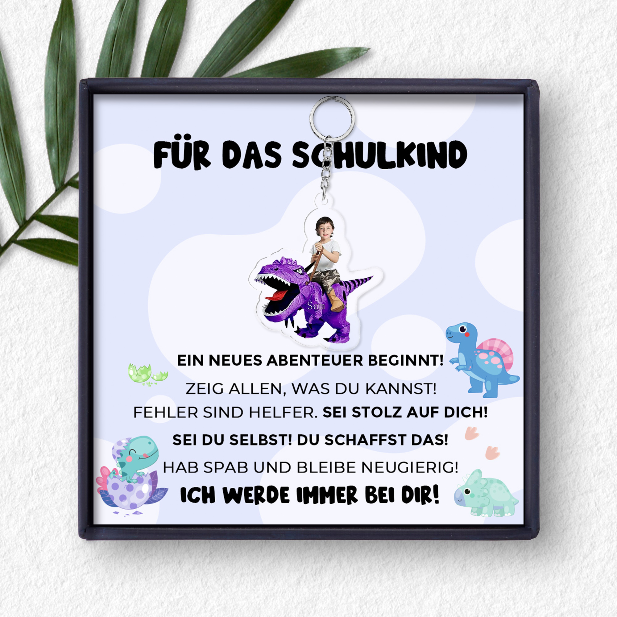 Personalisierter 1 Name & Foto Dinos Acryl Schultasche Anhänger Schlüsselanhänger-Für das Schulkind- Schulanfang Geschenk