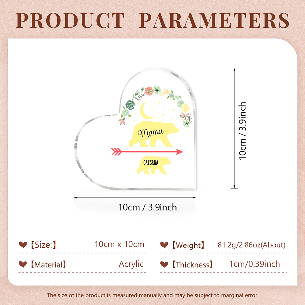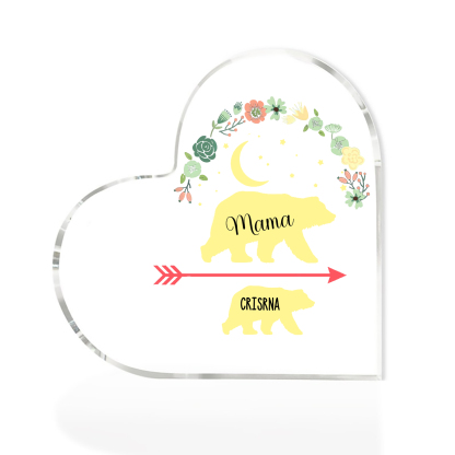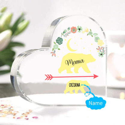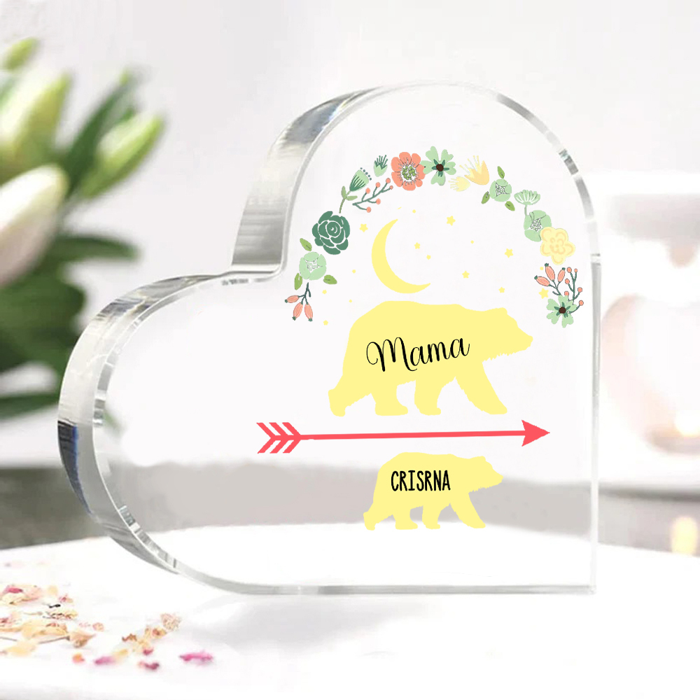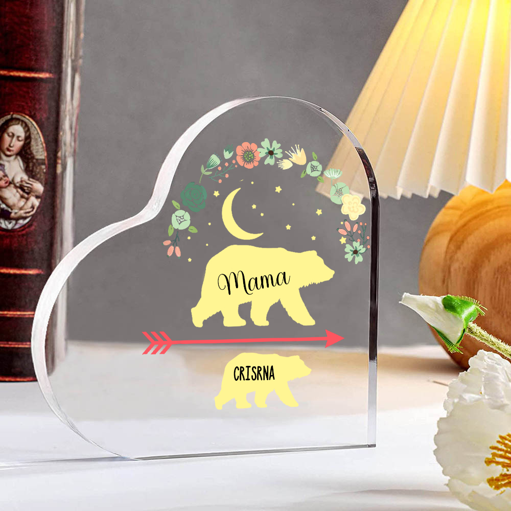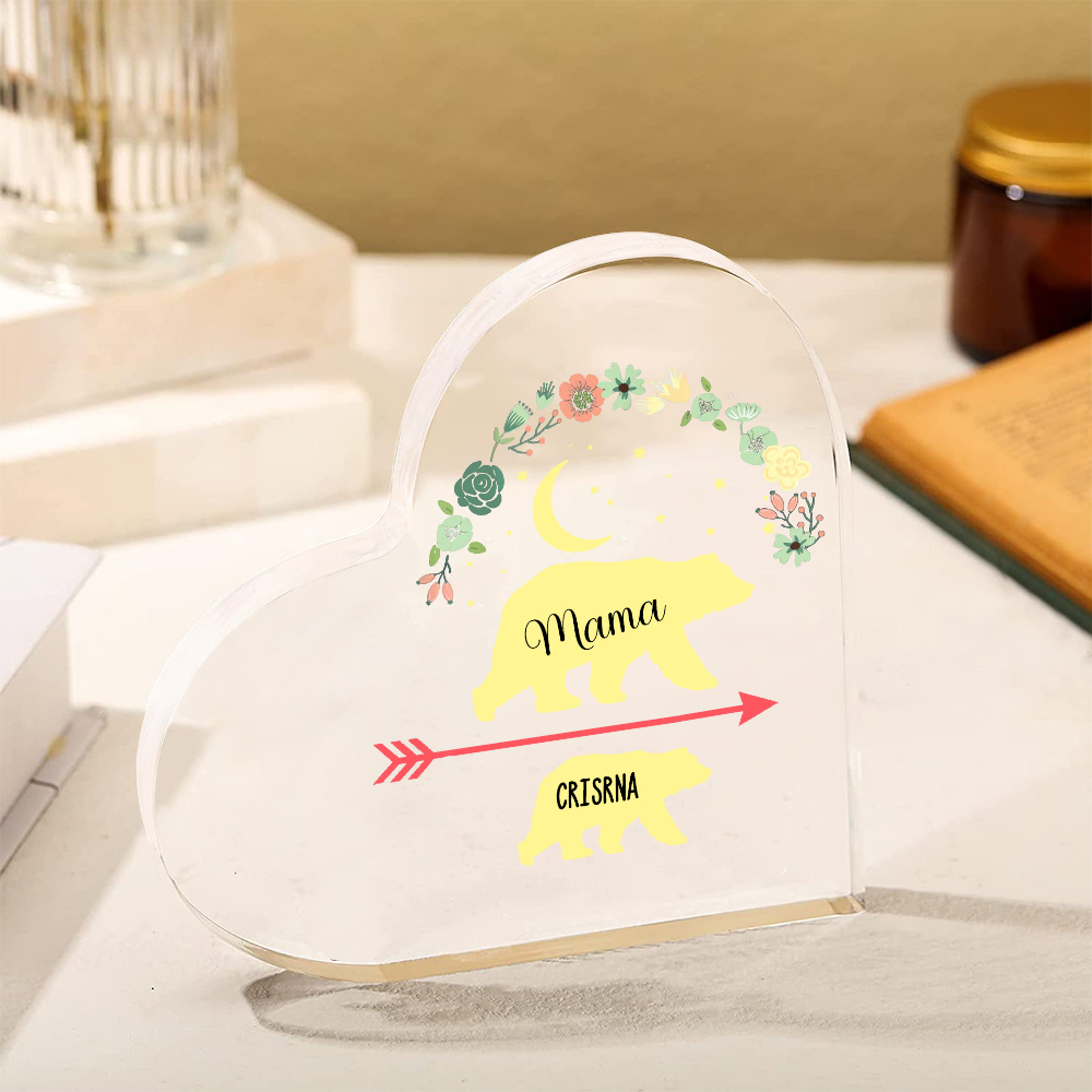 Personalisierter 1 Name Herz Acryl-Deko Mama Bär Schreibtischdekoration für Mutter