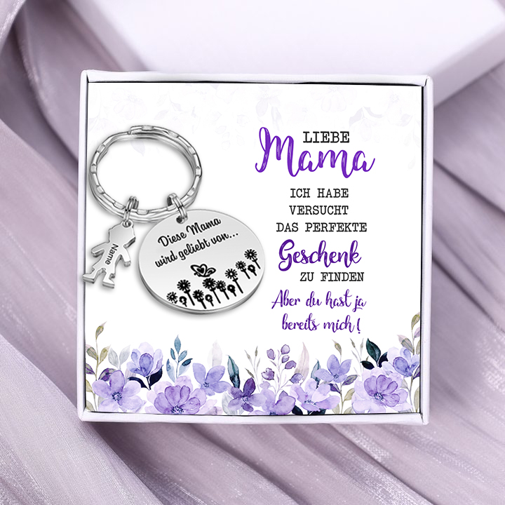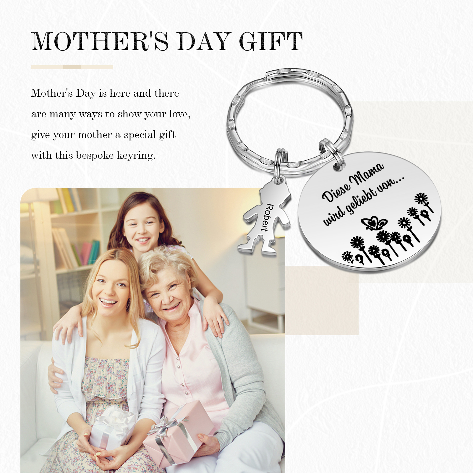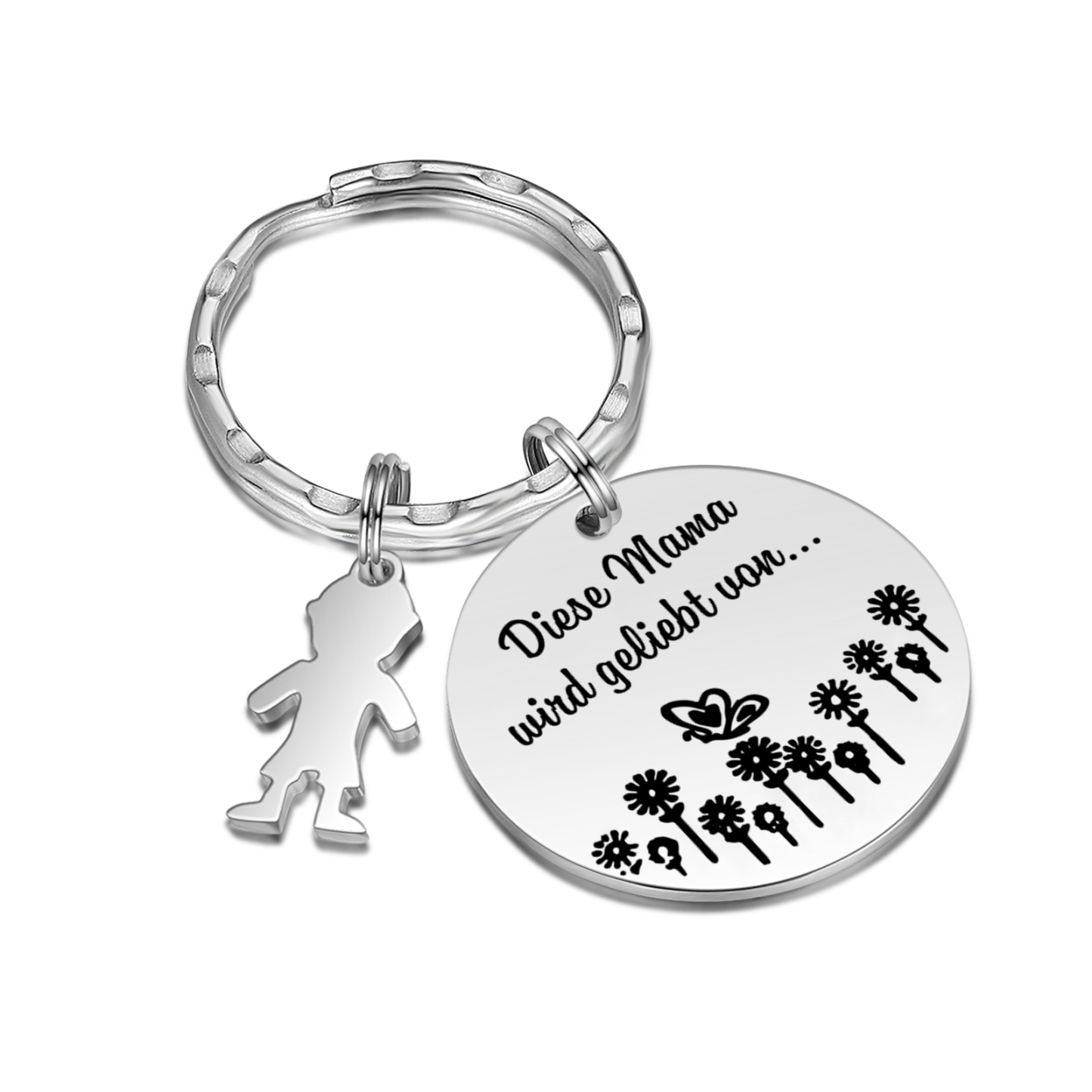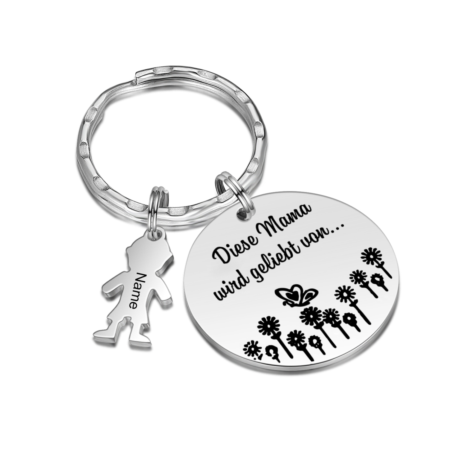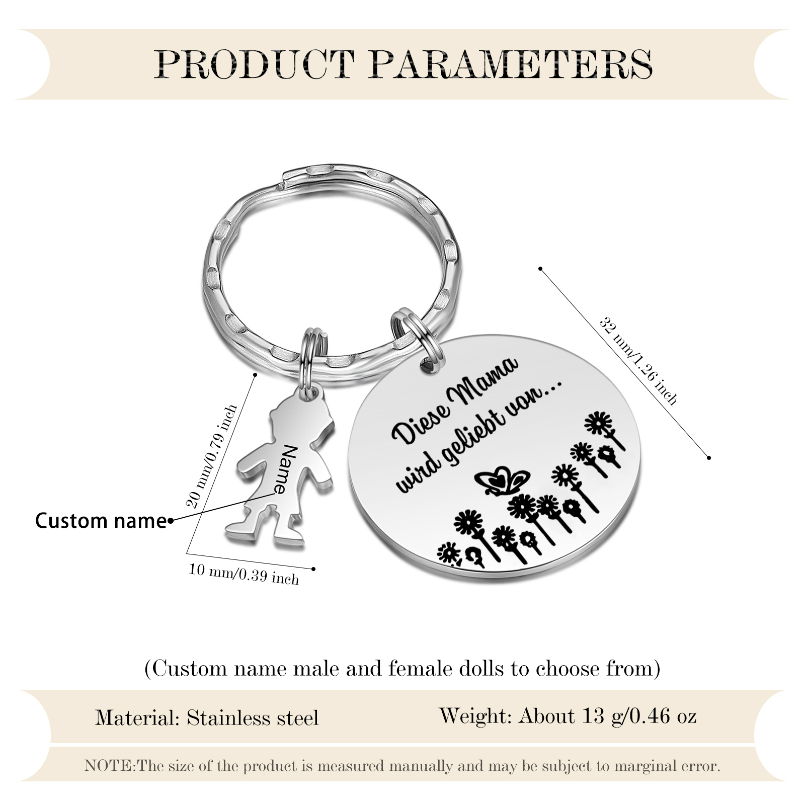 Personalisierter 1 Name Rund Edelstahl Schlüsselanhänger-Diese Mama wird geliebt von-Geschenk mit Nachrichtenkarte