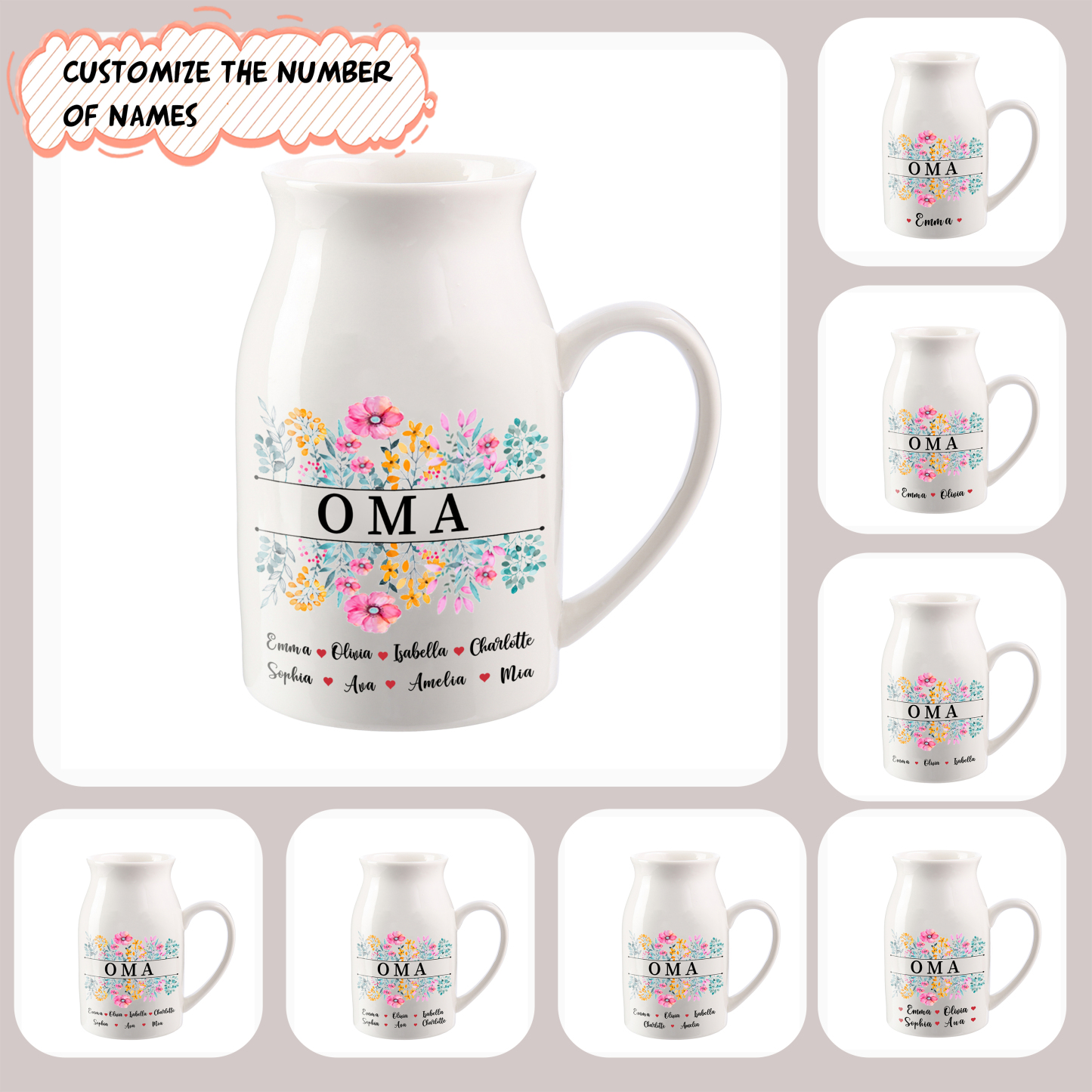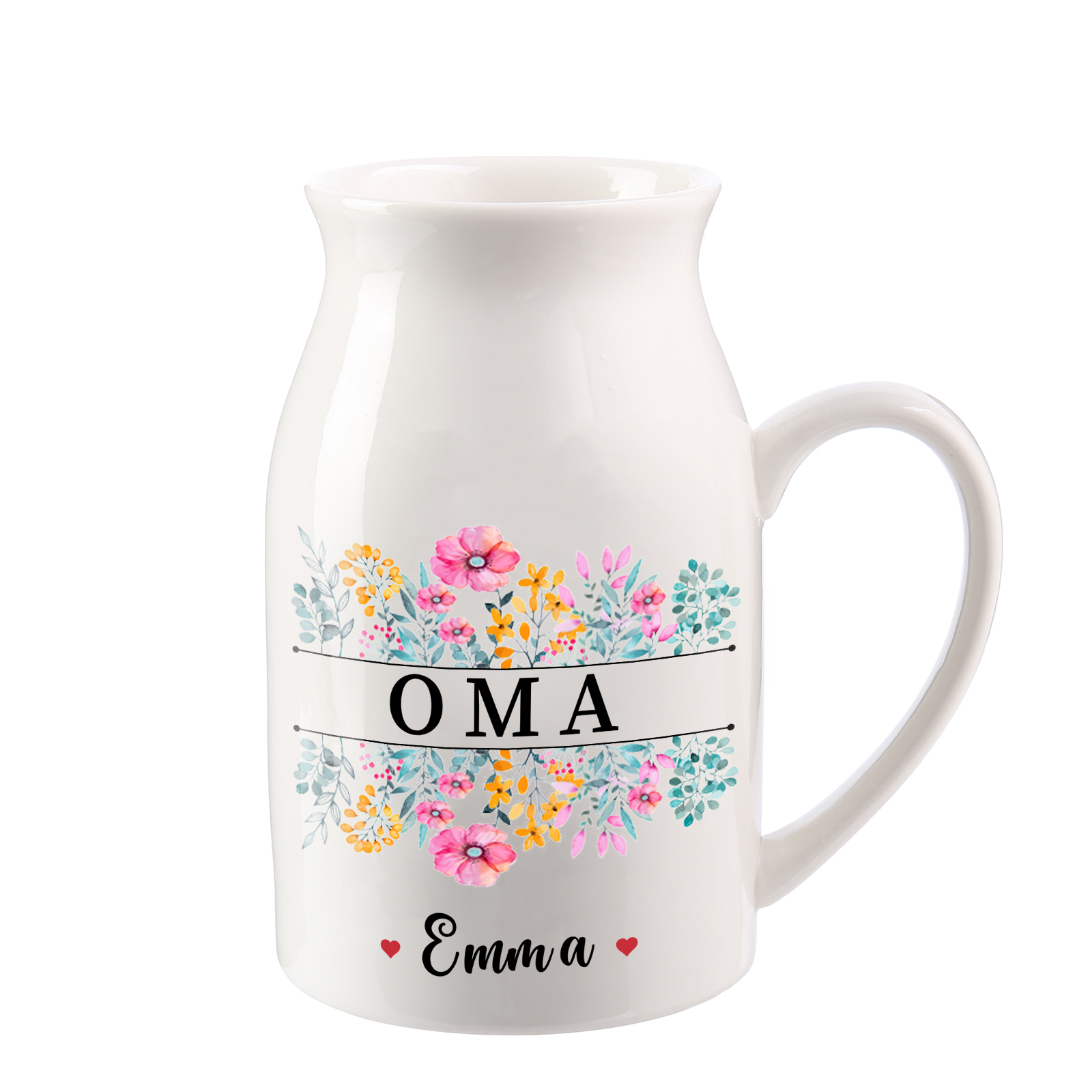 Personalisierter 1 Name & Text Bunte Blumen Familie Vase