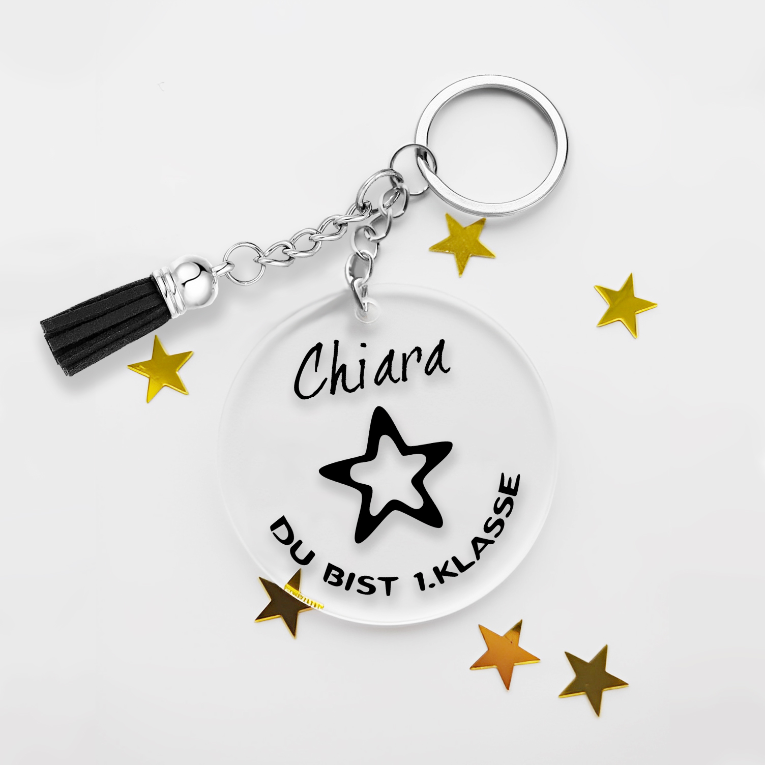 Personalisierter 1 Name & Text Rund Schulanfang Stern Acryl Schlüsselanhänger für Schulkind