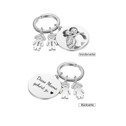 Personalisierter 2 Namen & 1 Foto & 1 Text Familie Schlüsselanhänger-für Opa/Oma/Mama/Papa