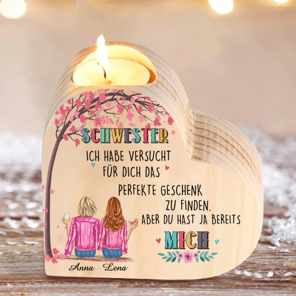 Personalisierter 2 Namen Herzform Kerzenhalter-Schwester du bereits hast mich -Kerzenhalter