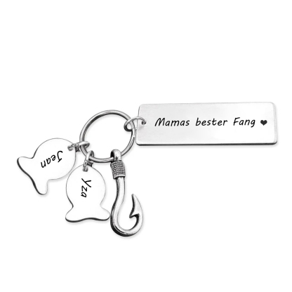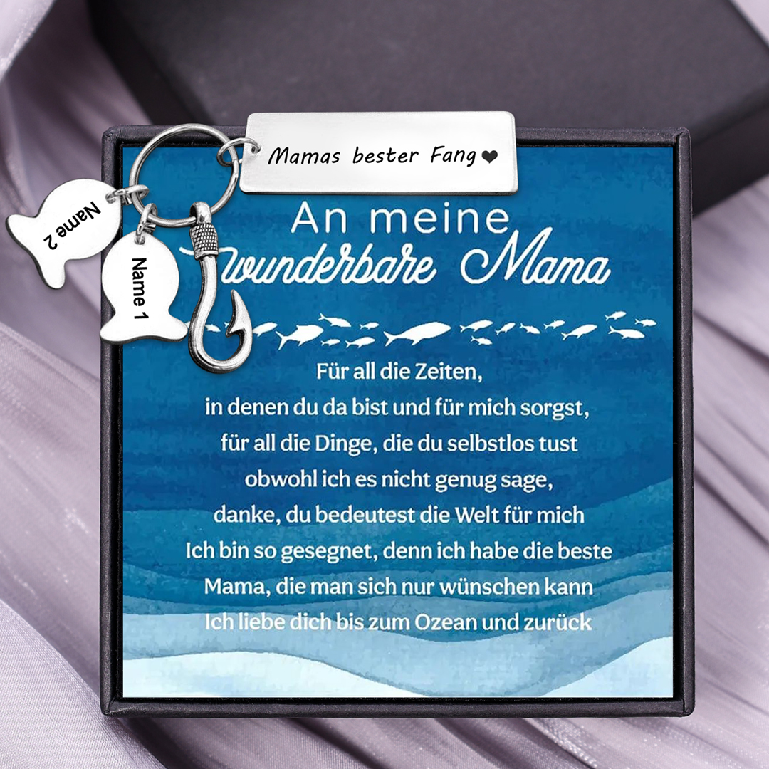 Personalisierter 2 Namen-Mamas bester Fang-Schlüsselanhänger-An meine wunderbare Mama-Geschenk mit Nachrichtenkarte