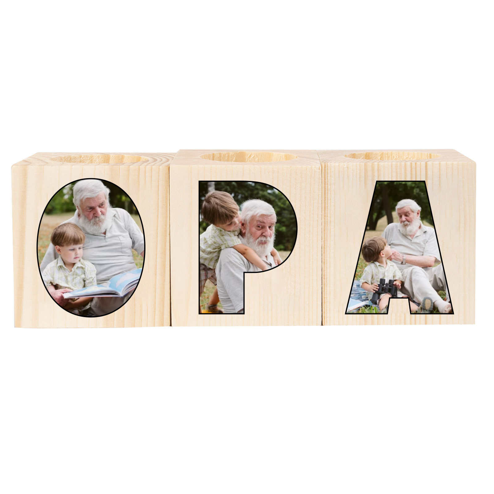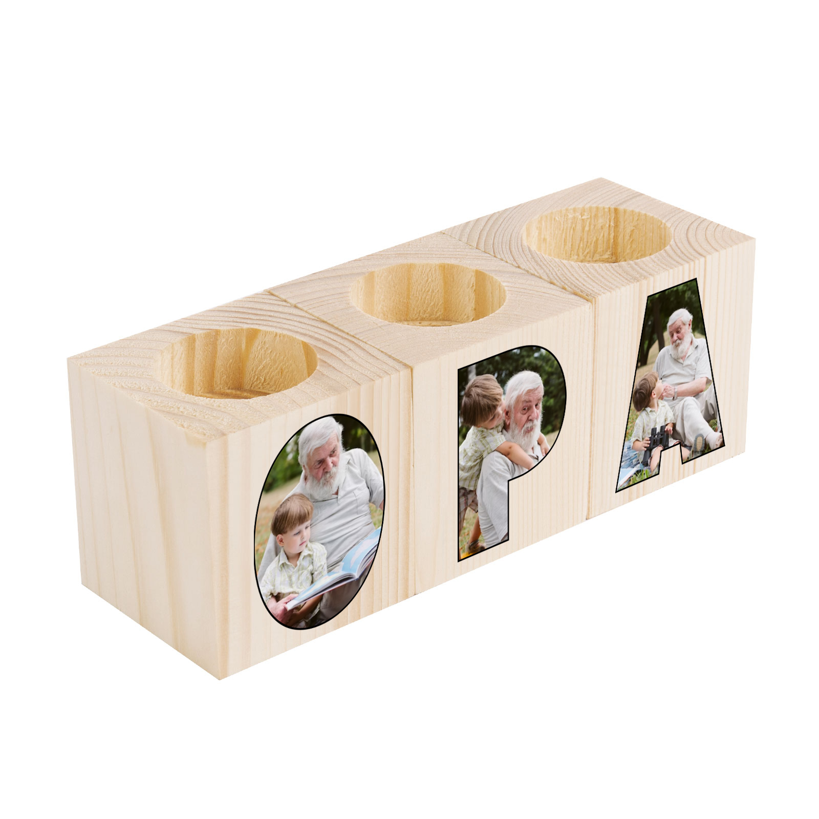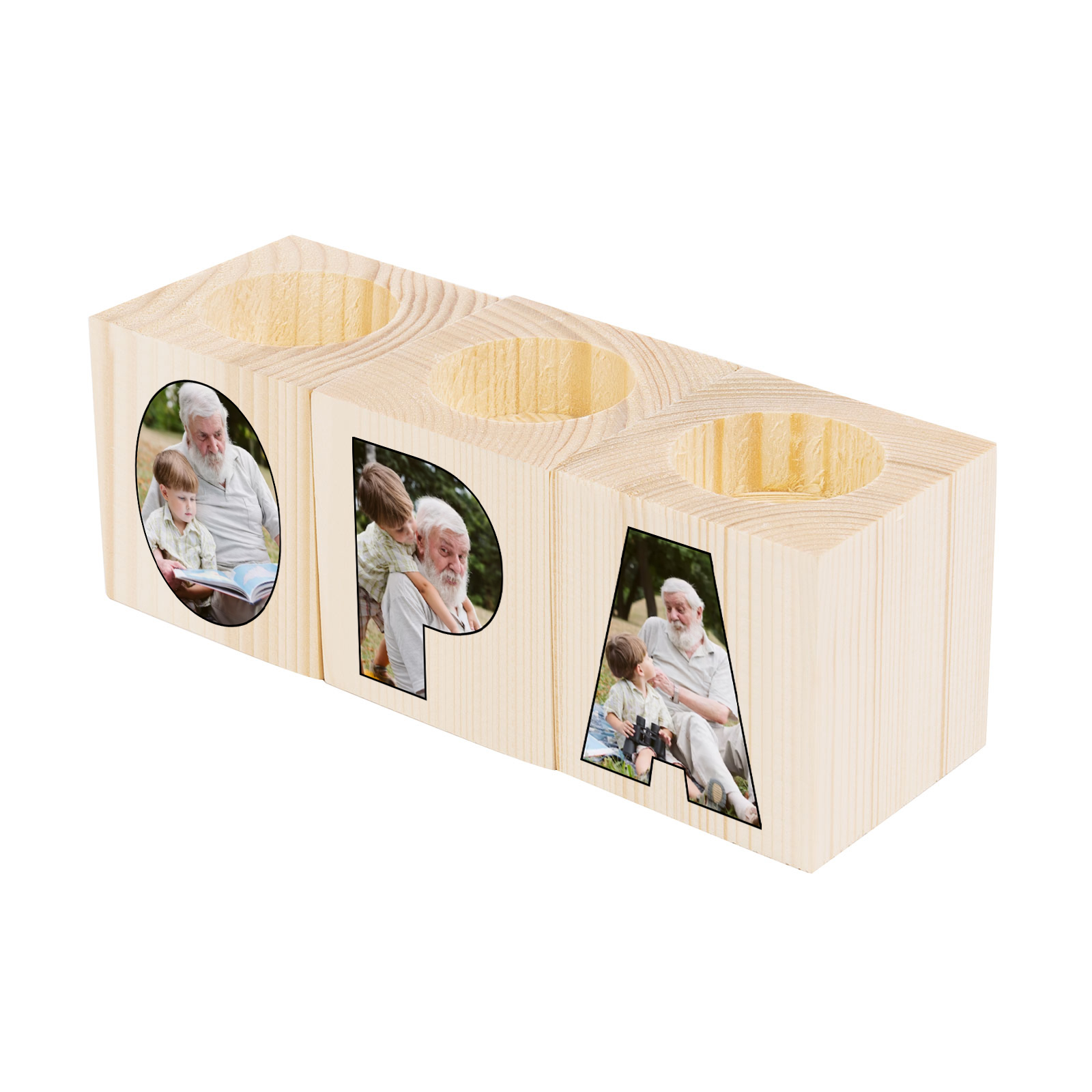 Holz Kompliment Personalisierter 3 bedruckte Seiten 3 Fotos Opa Kerzenhalter-Geschenk für Großvater