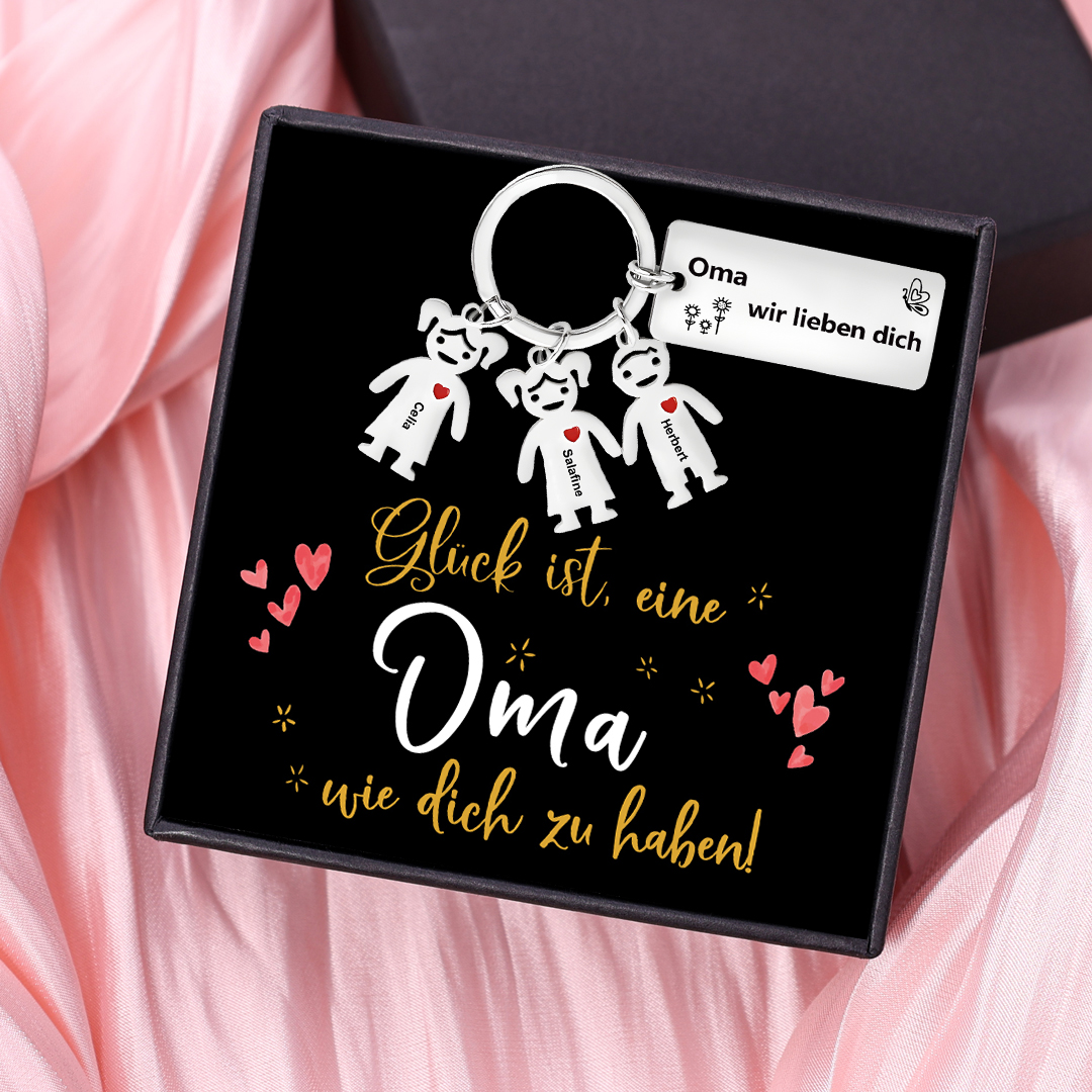 Personalisierter 3 Namen für Großmutter Herz Schlüsselanhänger-Oma, wir lieben dich-Geschenk mit Nachrichtenkarte