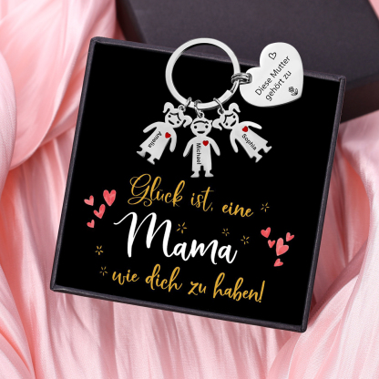 Personalisierter 3 Namen Herz Schlüsselanhänger-Diese Mutter Gehört zu-Geschenk mit Nachrichtenkarte zum Muttertag