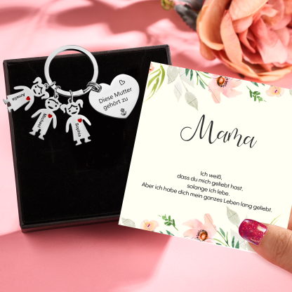 Personalisierter 3 Namen Herz Schlüsselanhänger zum Muttertag-Diese Mutter Gehört zu-Geschenk mit Nachrichtenkarte