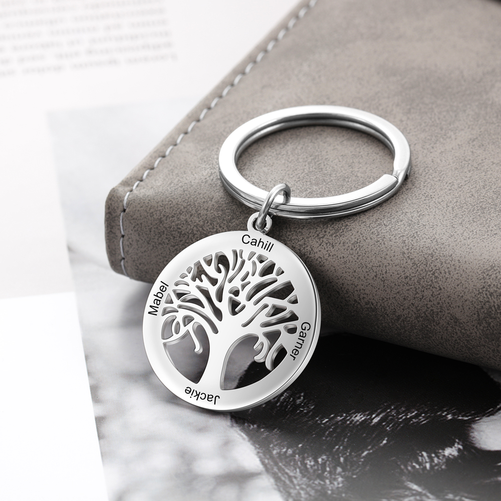 Personalisierter 4 Namen Familienstammbaum Schlüsselanhänger