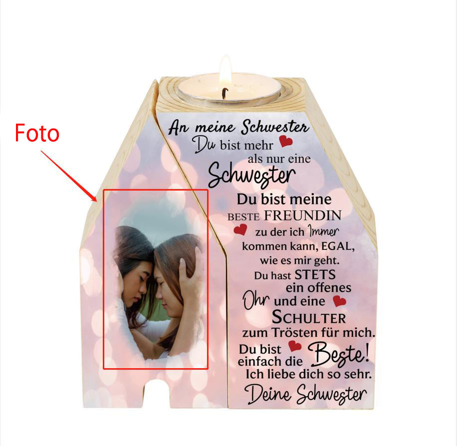 Personalisierter Foto Hausform Kerzenhalter-An meine Schwester Du bist einfach die Beste-Geschenk für Schwester