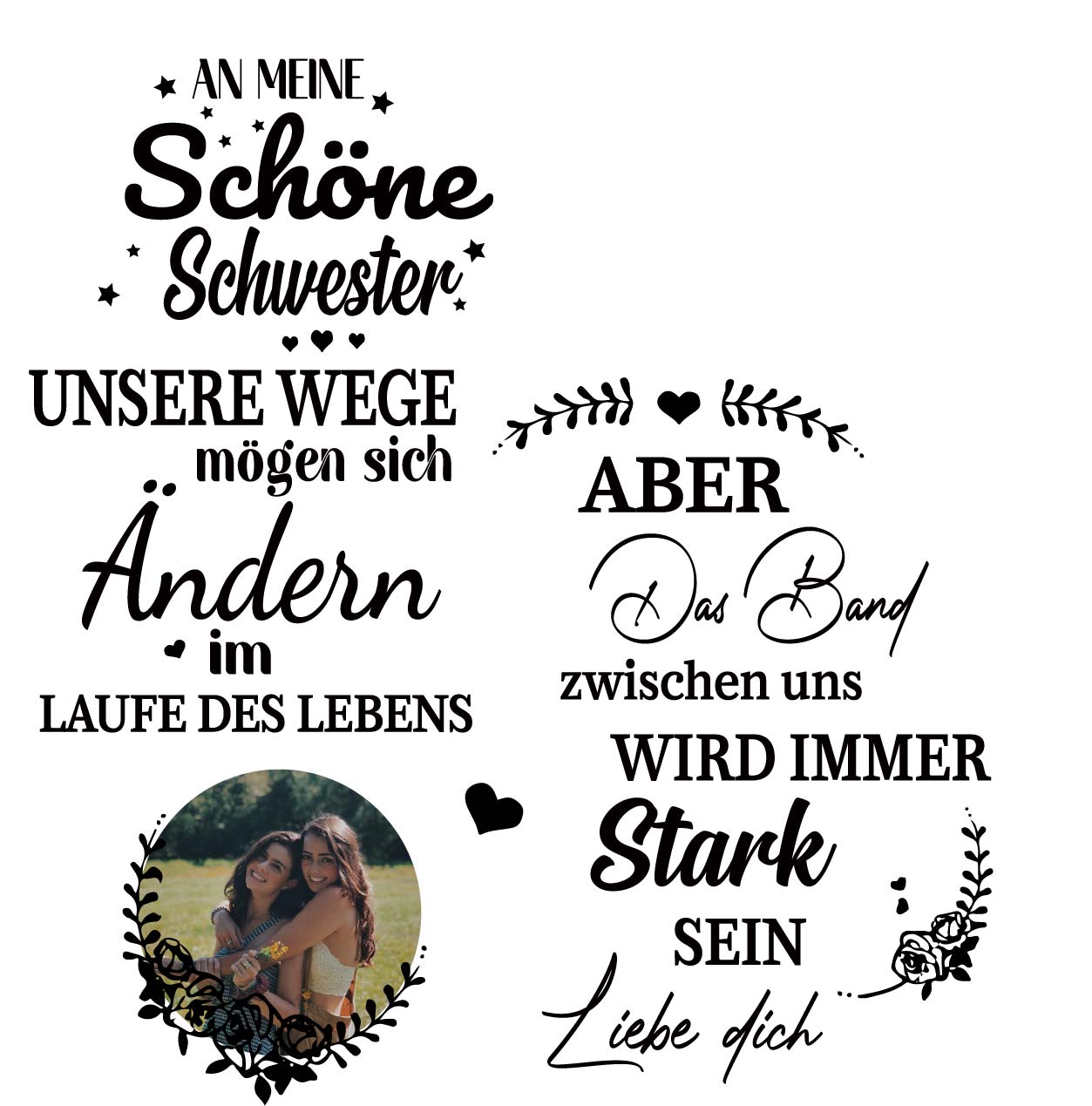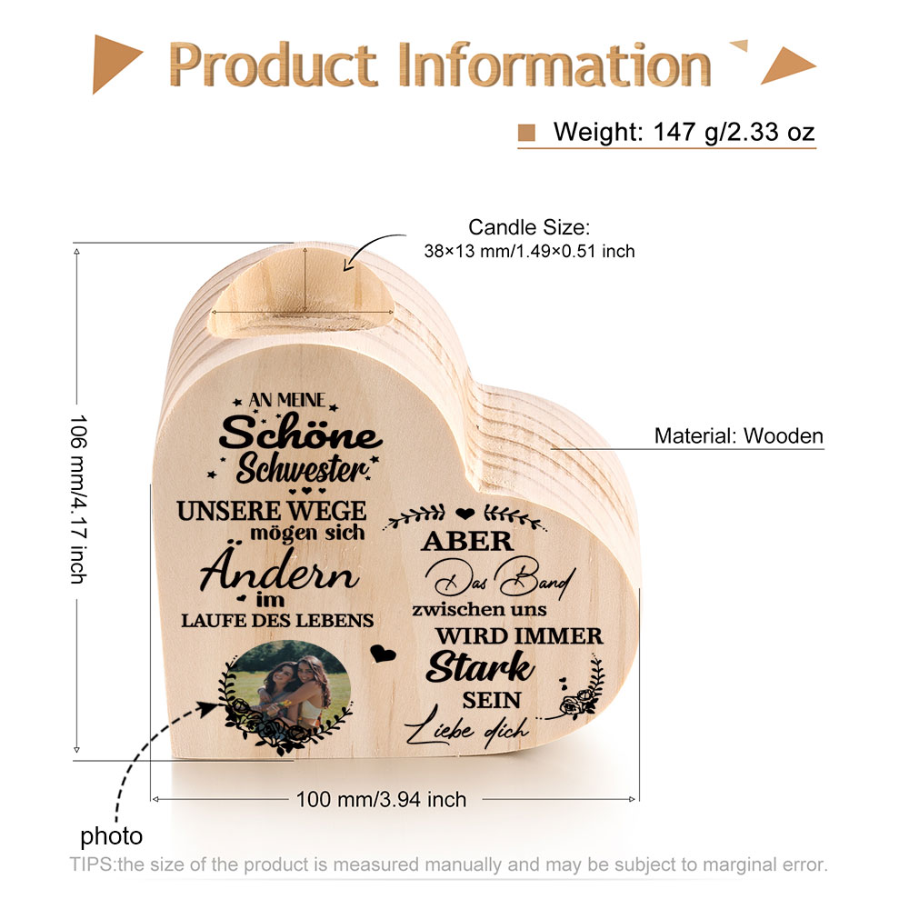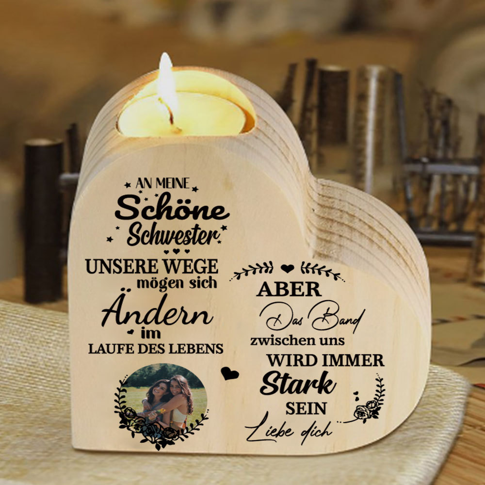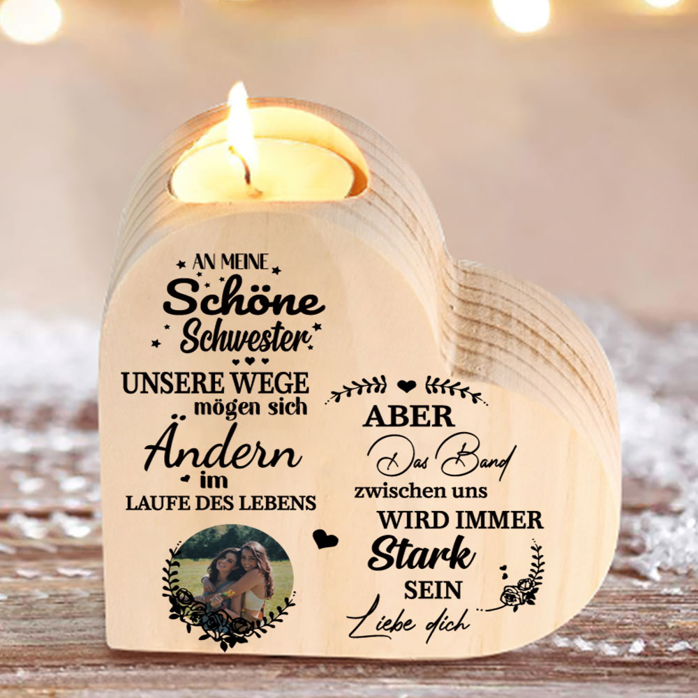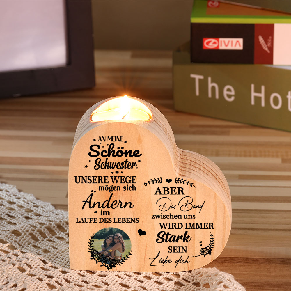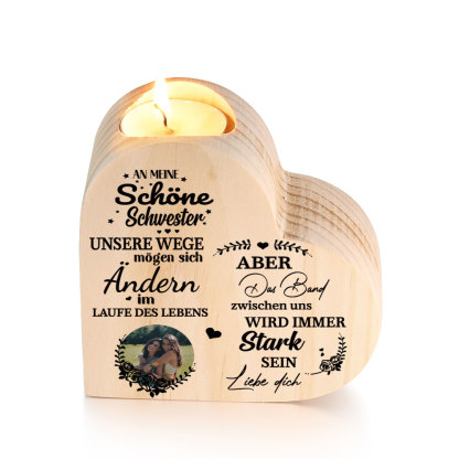 Personalisierter Foto Herzform Kerzenhalter - An meine Schwester