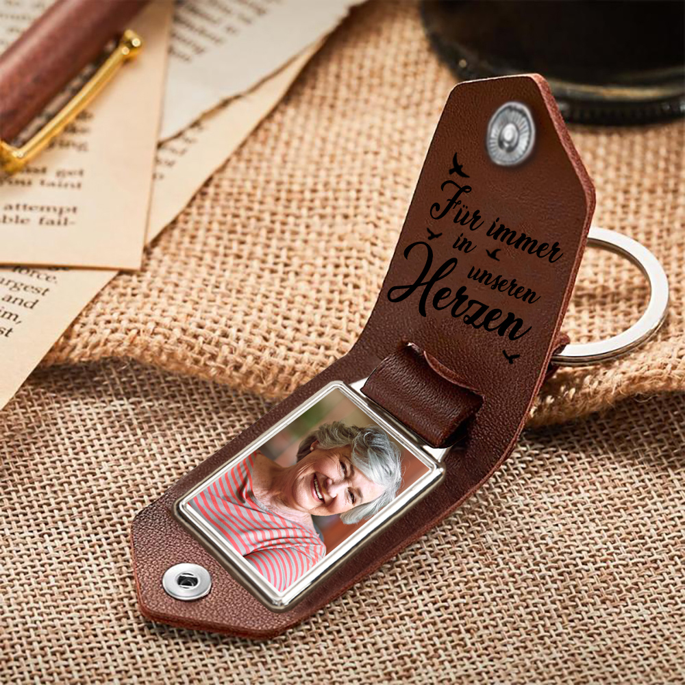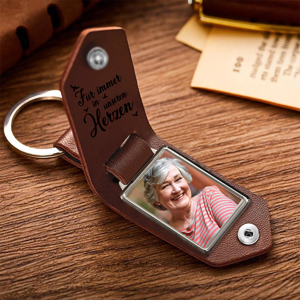 Personalisierter Foto & Name & Datum Leder Gedenk Schlüsselanhänger-Für immer in unseren Herzen