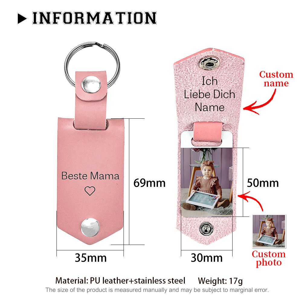 Personalisierter Foto & Name Leder Schlüsselanhänger-Beste Mama Ich Liebe Dich-Geschenk für Mutter