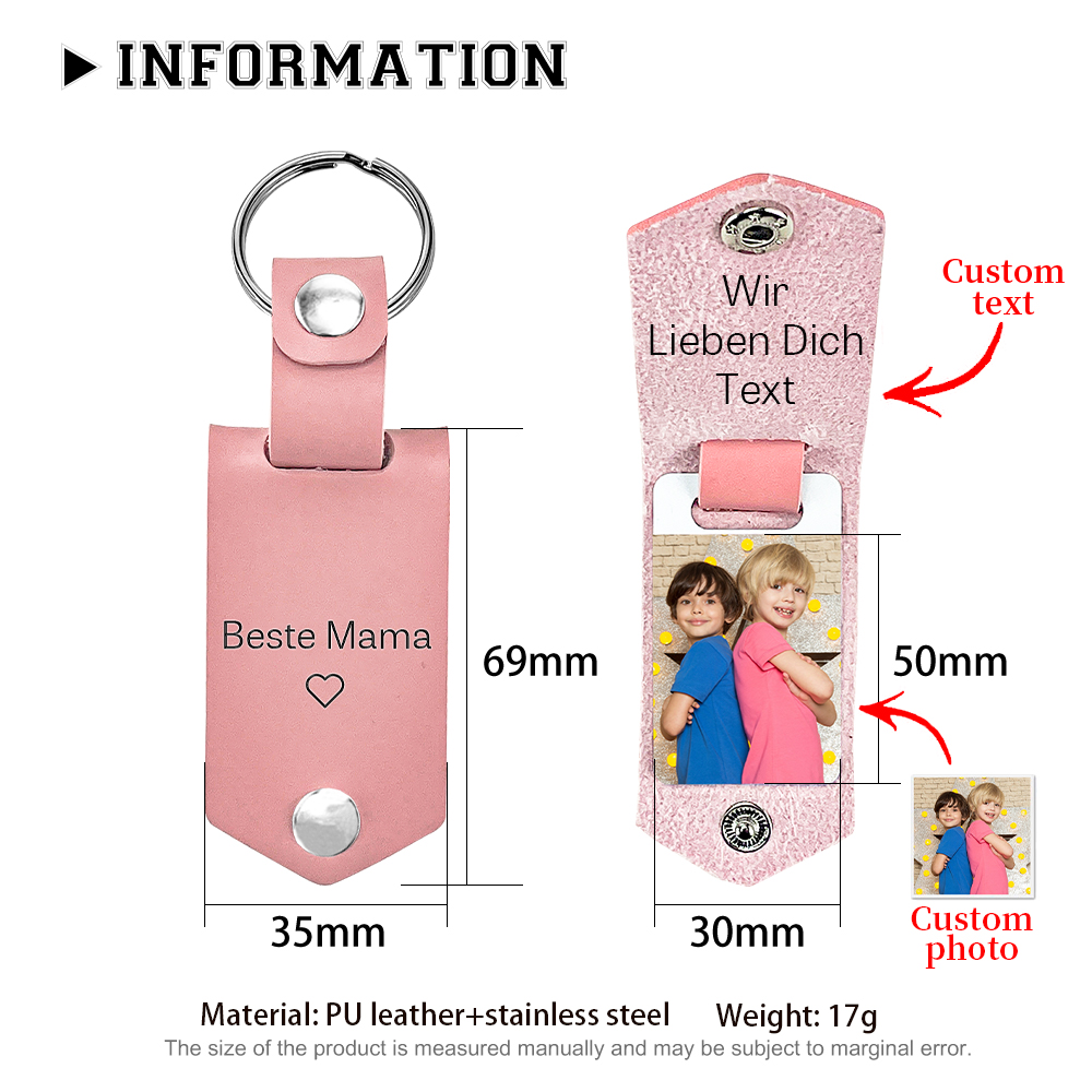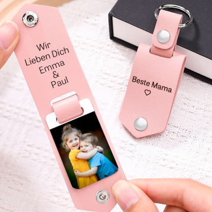 Personalisierter Foto & Text Leder Schlüsselanhänger-Beste Mama Wir Lieben Dich-Geschenk für Mutter
