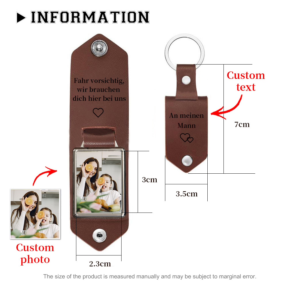 Personalisierter Foto & Text Leder Schlüsselanhänger-Fahr Vorsichtig, wir brauchen dich hier bei uns