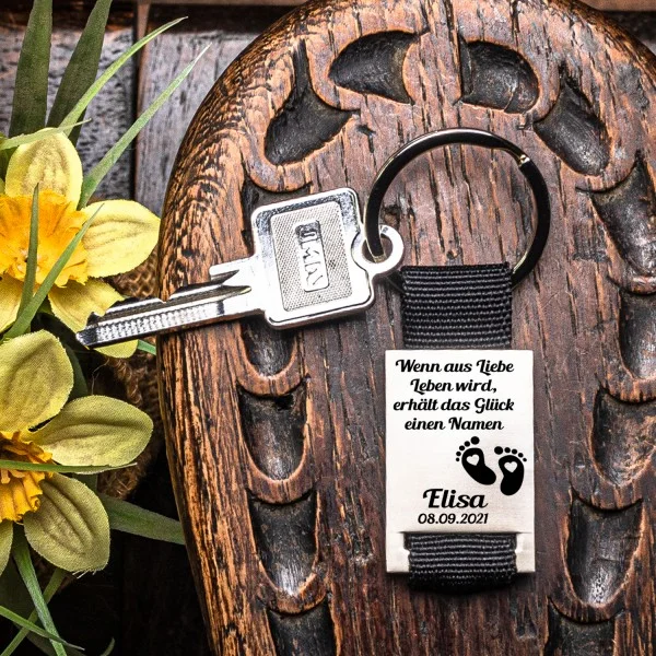 Personalisierter Gravur Schlüsselanhänger mit Fußabdrücken - Muttertag Vatertag Geschenk für Mama Papa