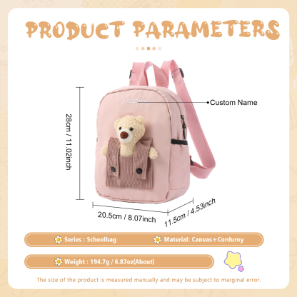 Personalisierter Name Bär im Overall Rucksack Schüler Schultasche aus Canvas Cord