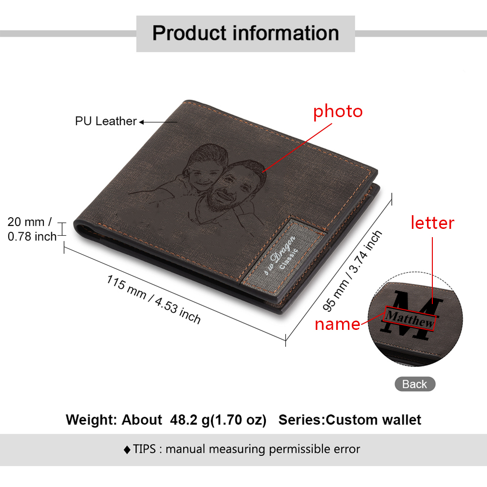 Personalisierter Name & Buchstabe & Foto Leder Herren Geldbörse mit Kartenfach