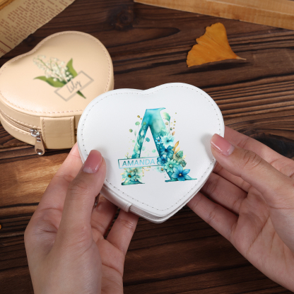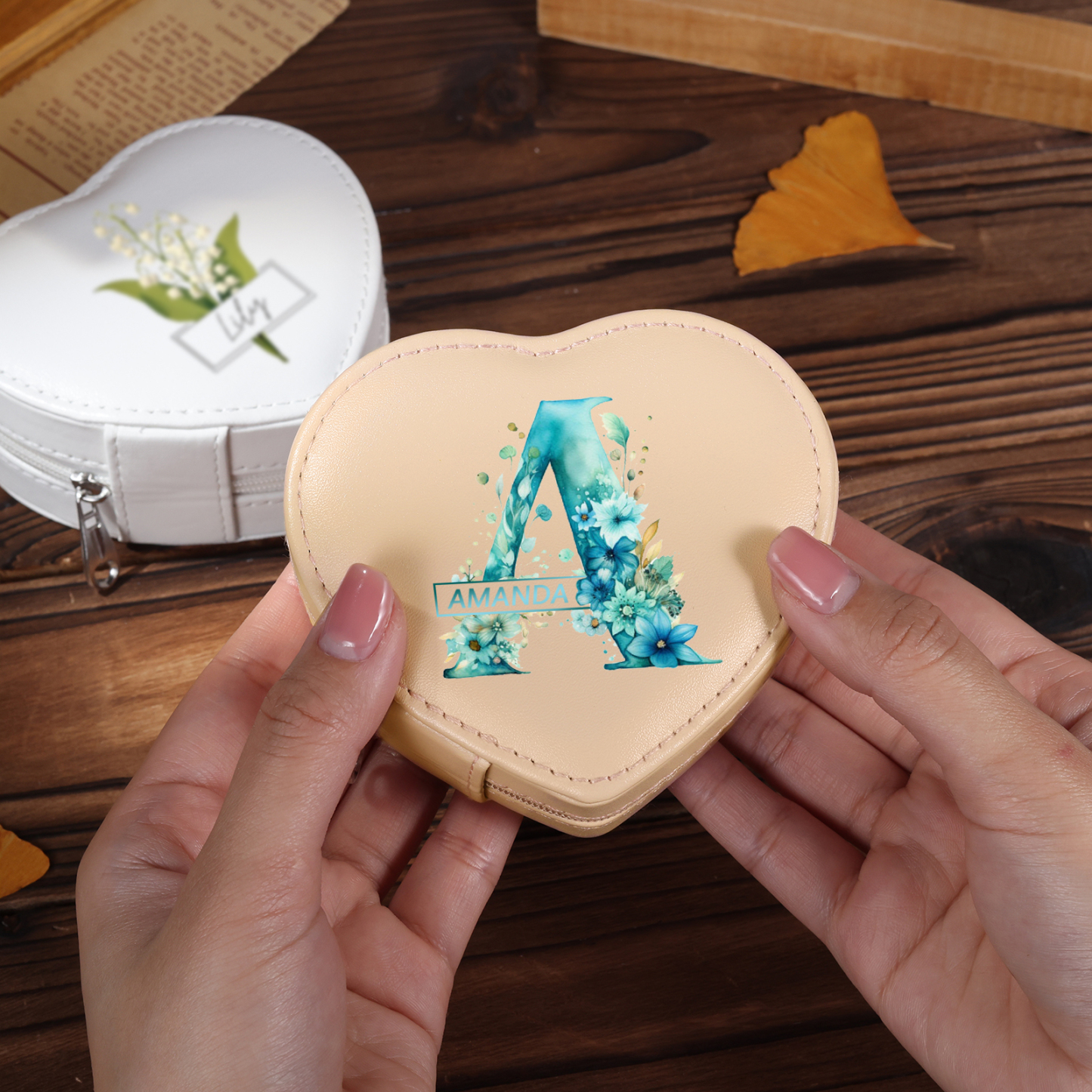 Personalisierter Name & Buchstabe Herz PU Leder Schmuckaufbewahrung Schmuckzubehör Aufbewahrungsbox für Schmuck