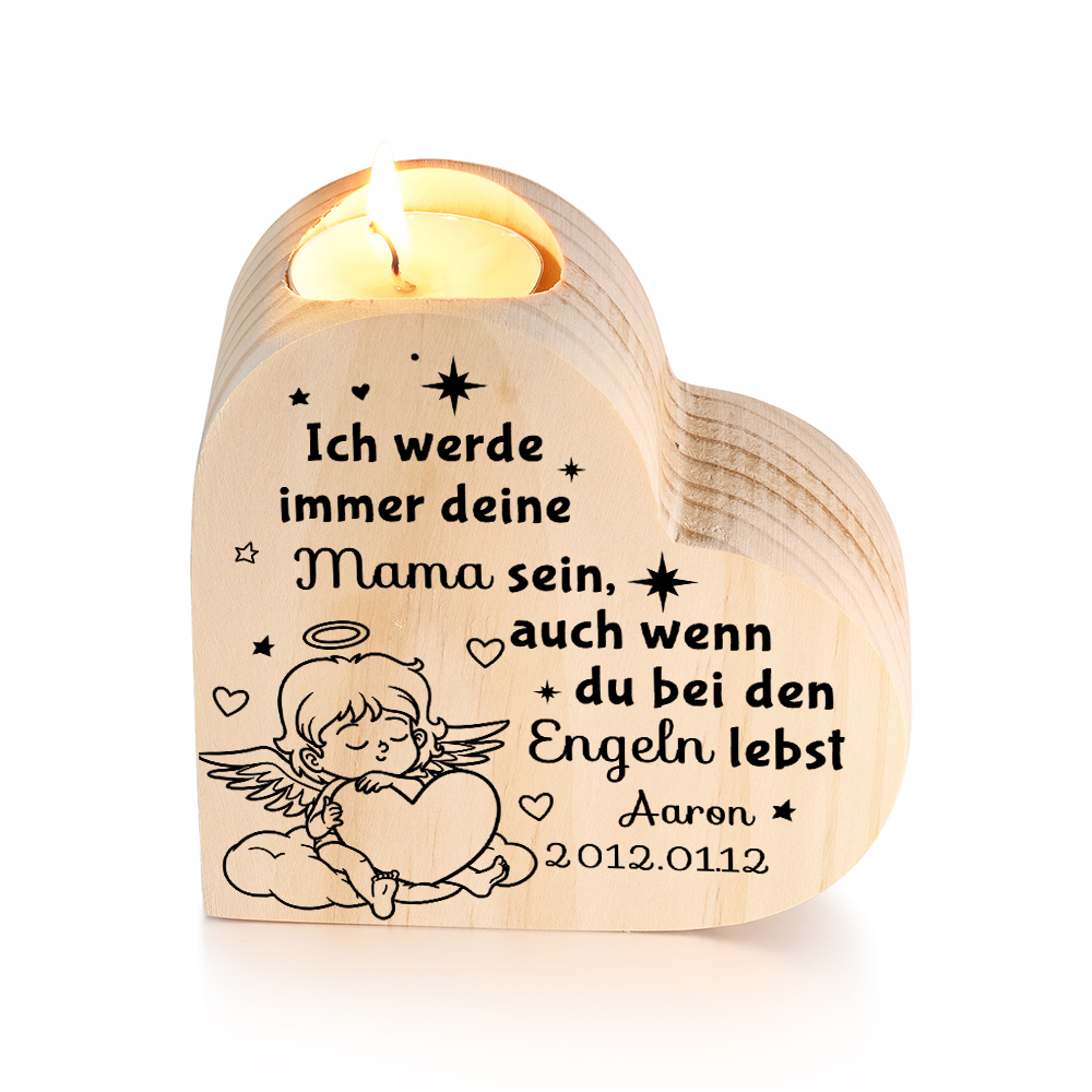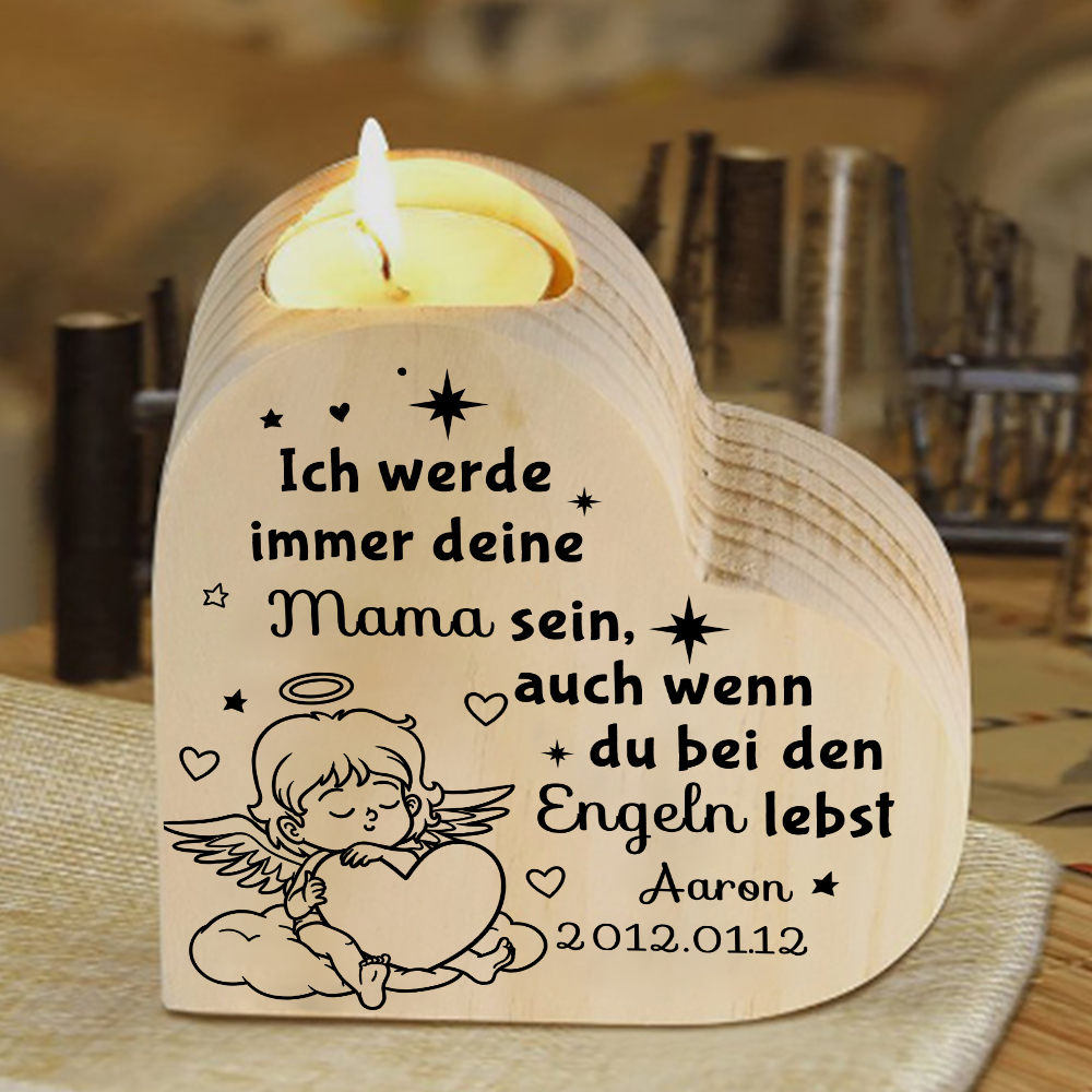 Personalisierter Name & Datum -Ich werde immer deine Mama sein- Trauer Herzform Kerzenhalter für Sternenkinder