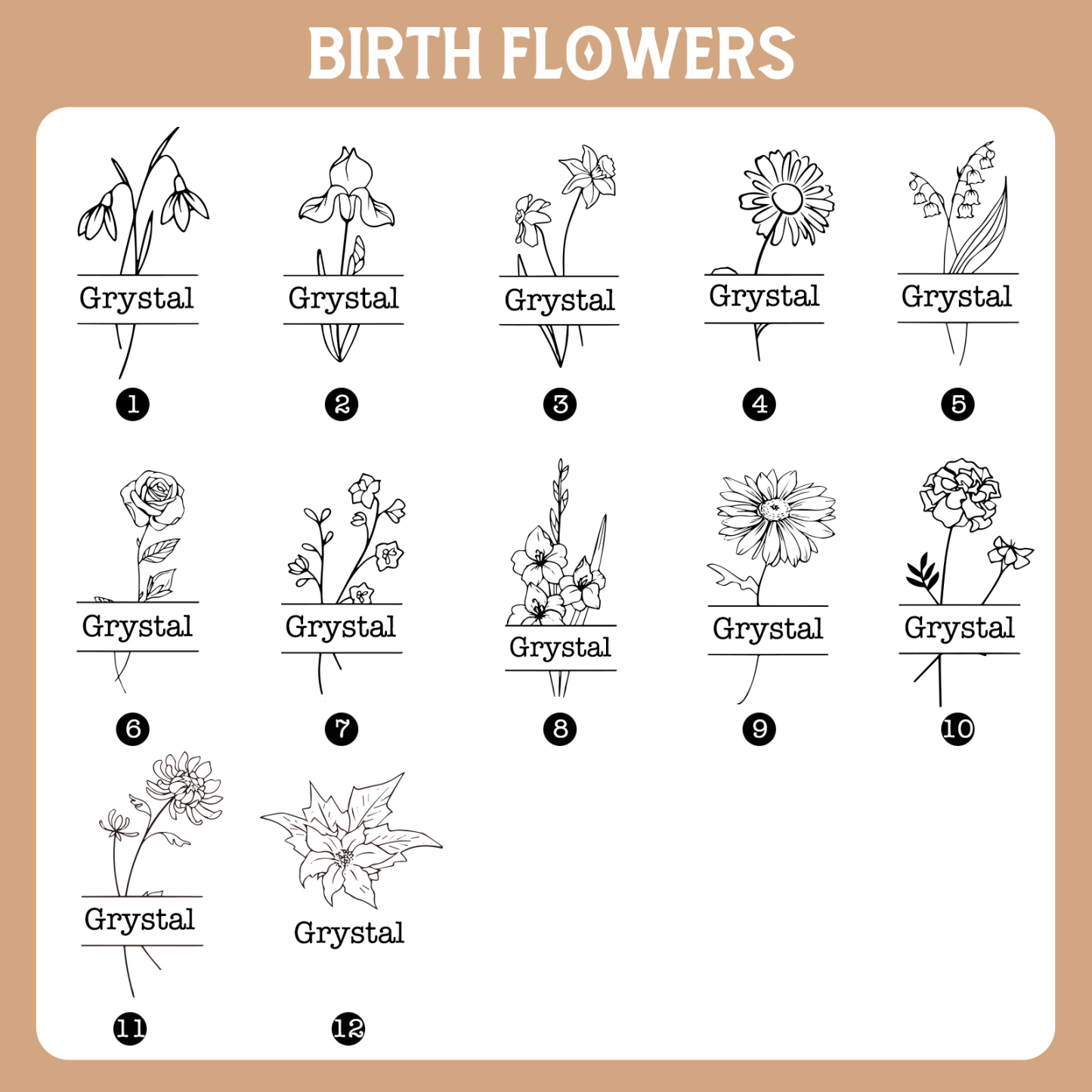 - 1 bis zu 9 Namensgravuren verfügbar;