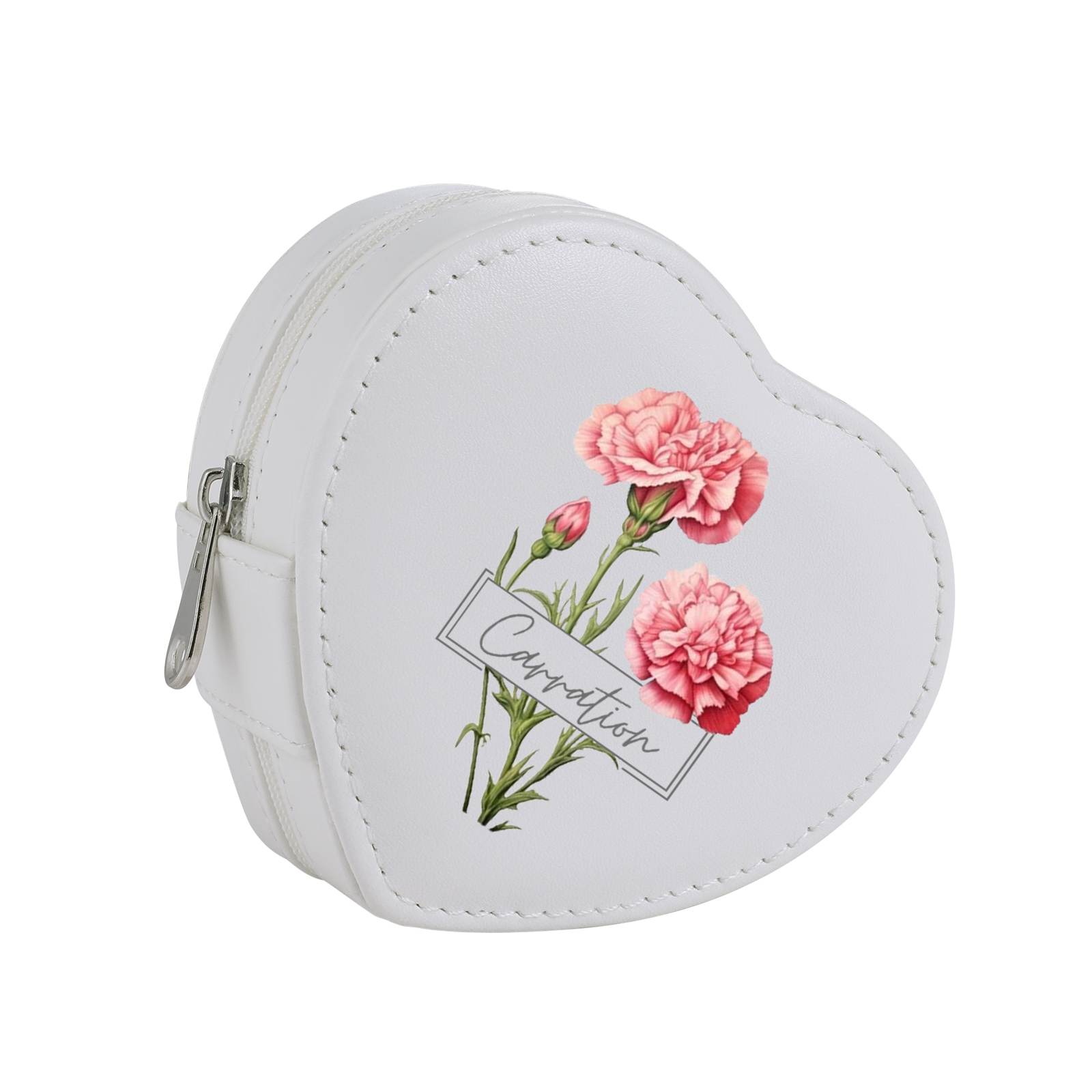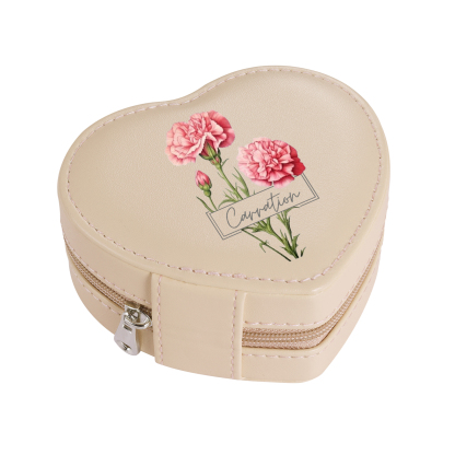 Personalisierter Name & Geburtsblume Herz PU Leder Schmuckaufbewahrung Schmuckzubehör Aufbewahrungsbox für Schmuck