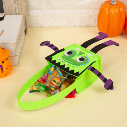sich diese Tasche ideal dafür. Sie ist auf Vorderseite mit einem süßem Karikatur-Gesicht bedruckt. Sie bietet viel Platz und lässt sich durch zwei Henkel prima tragen. Die Halloweentasche eignet sich auch als Accessoire für Ihre Halloween Party.
