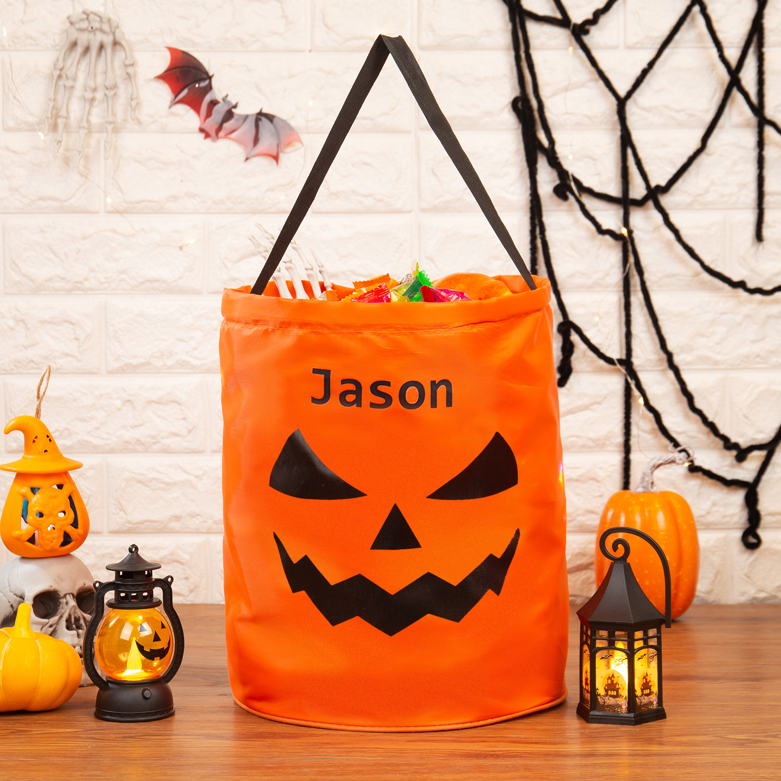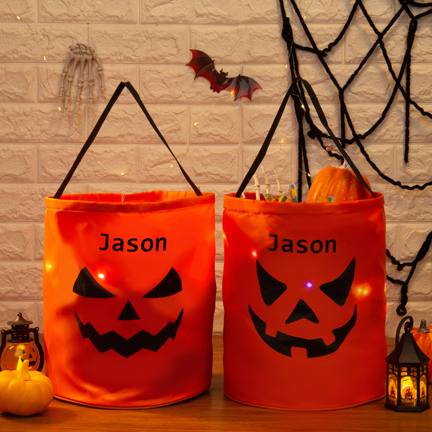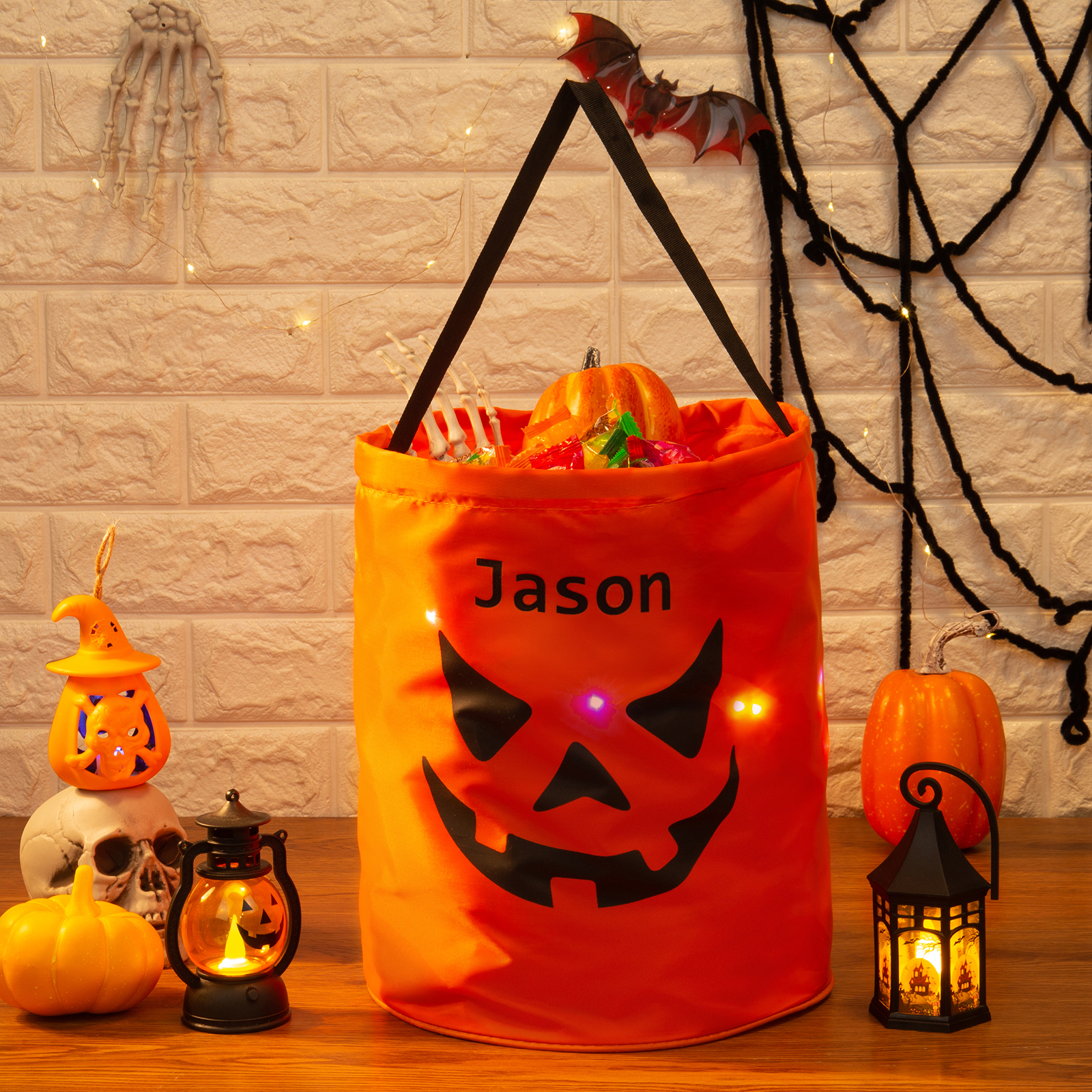 Personalisierter Name Halloween Tasche Süßes Oder Saures Süßigkeiten Tasche mit Led Licht