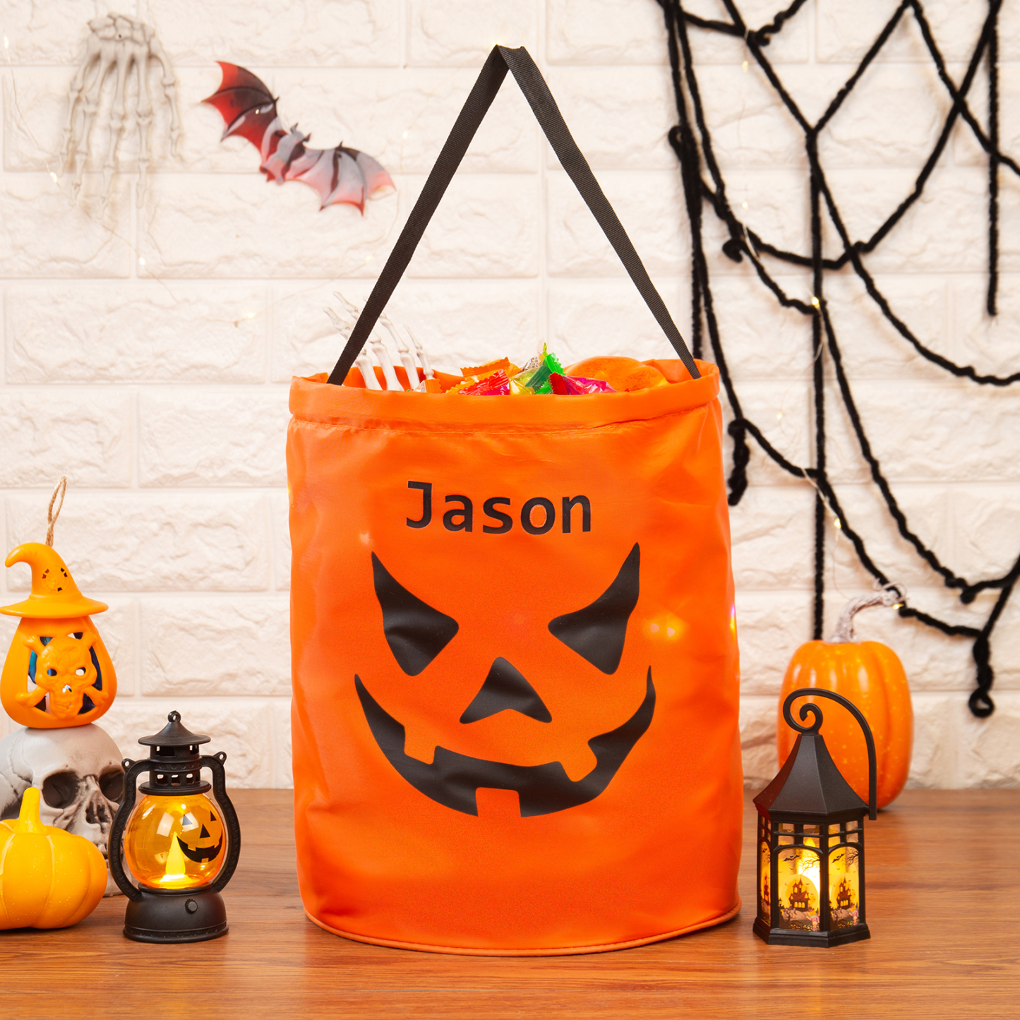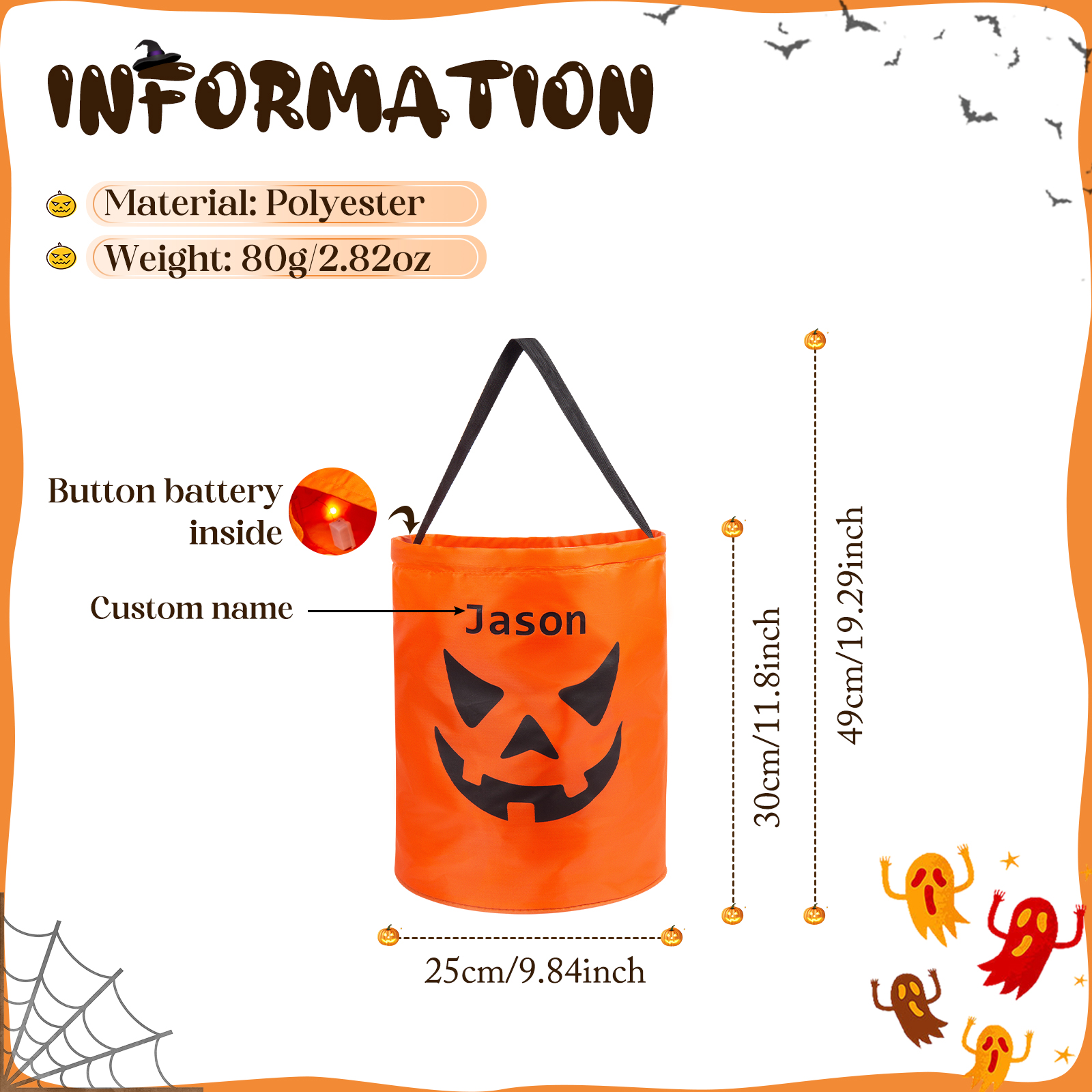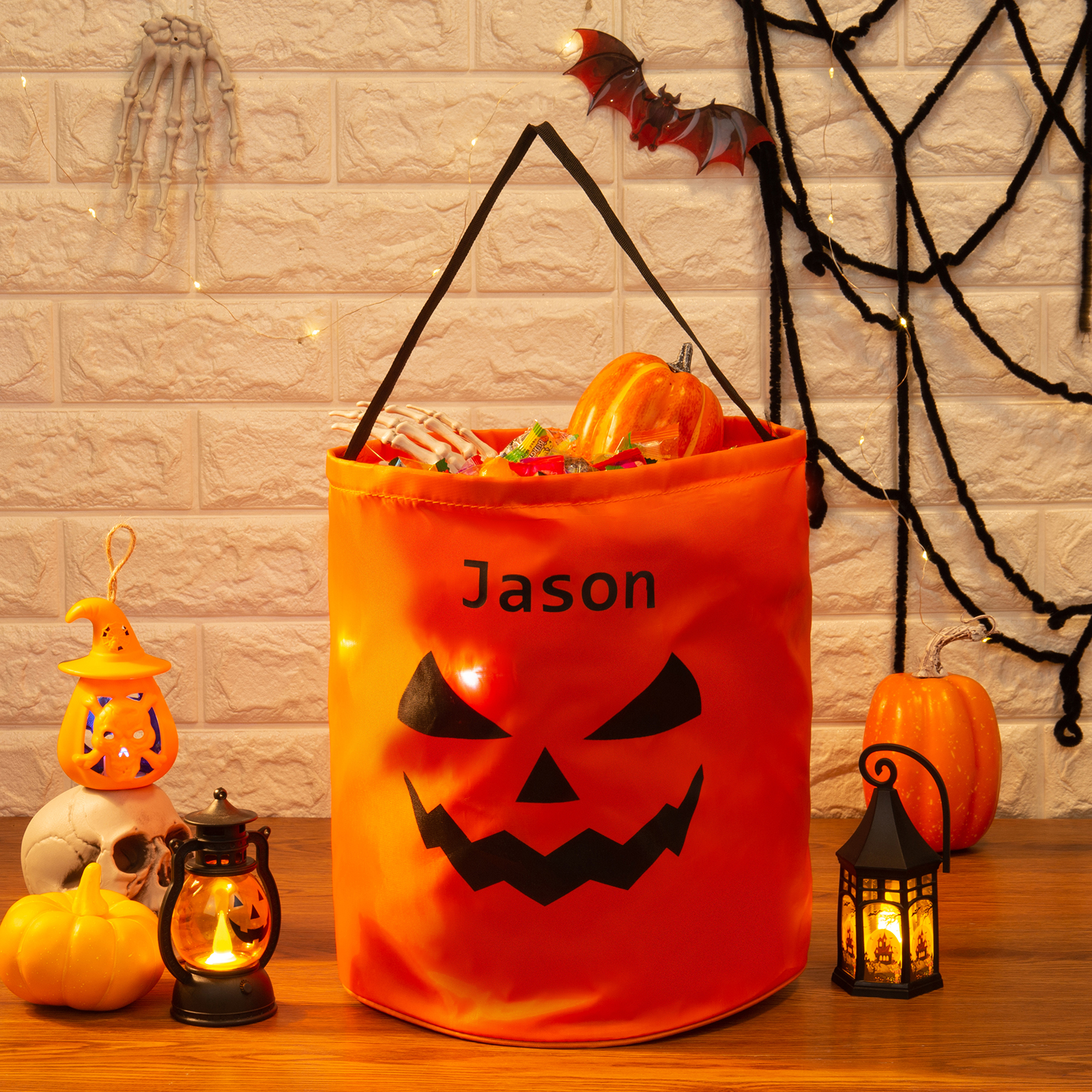 Personalisierter Name Halloween Tasche Süßes Oder Saures Süßigkeiten Tasche mit Led Licht