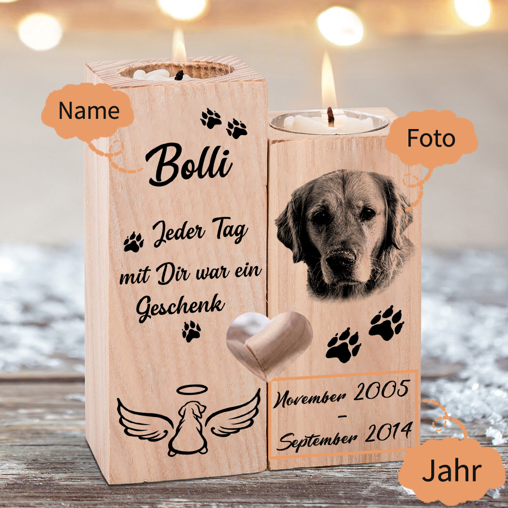 Personalisierter Name Jahr Foto für Haustier Gedenkkerzenhalter Hund Trauer Kerzenhalter