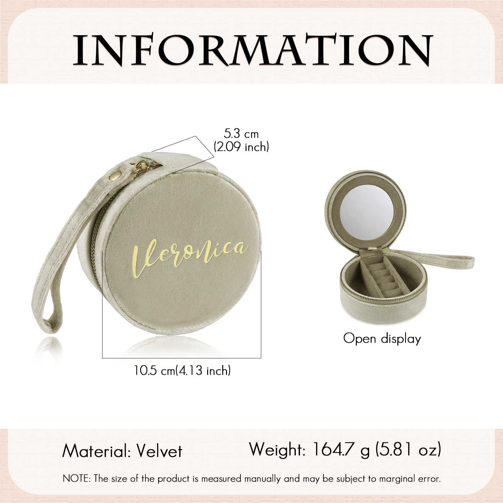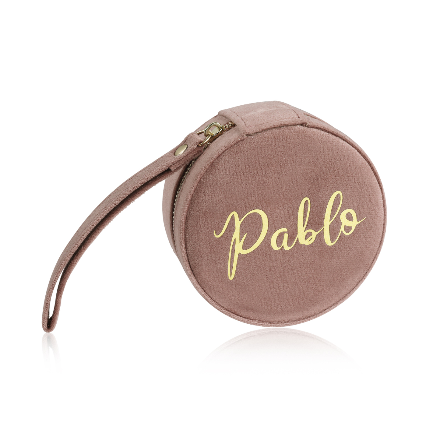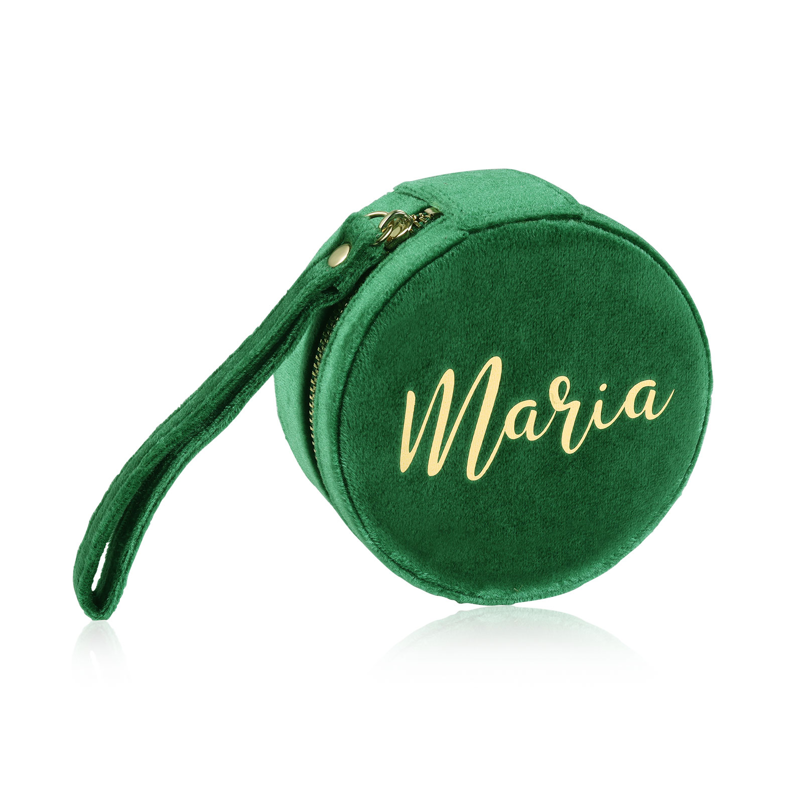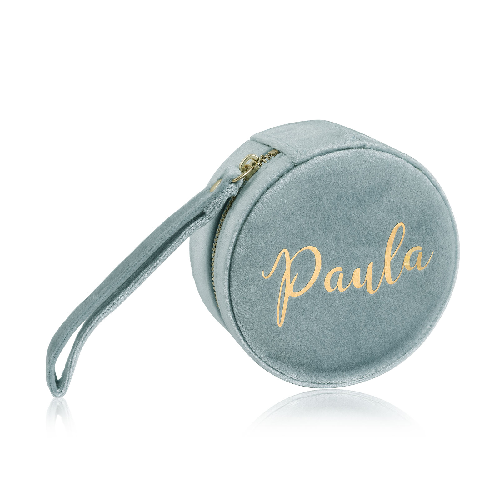 Personalisierter Name Rund Velvet tragbar Schmuckaufbewahrung Mit Spiegel Schmuckzubehör Aufbewahrungsbox für Schmuck